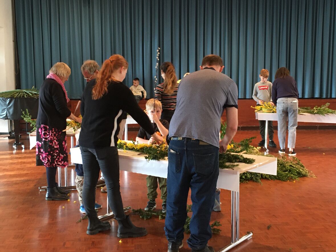 Heiligkreuz: Palmbinden im Pfarreiheim « zurück