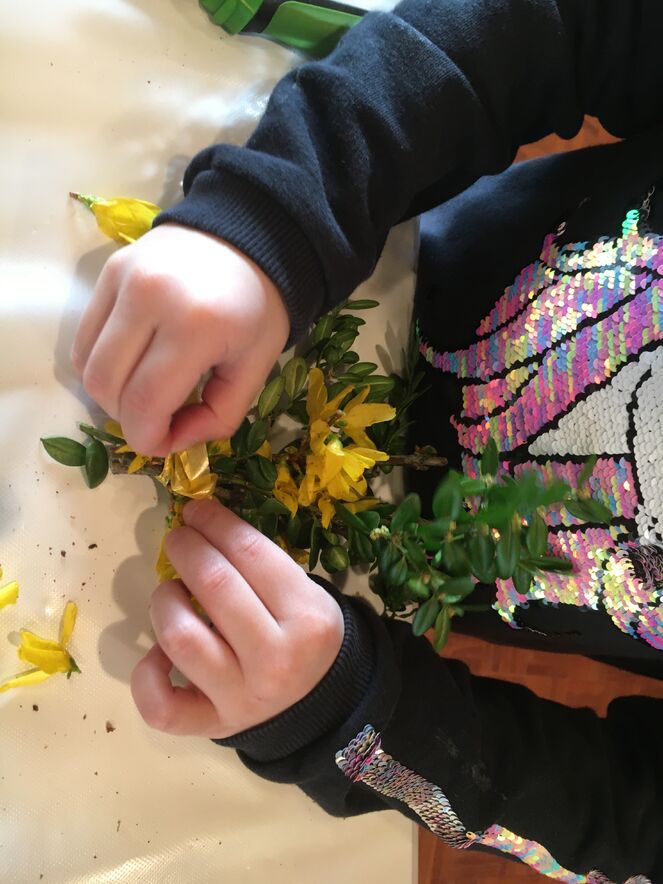 Schön, bunt, kreativ sind unsere Palmen, Kreuze und Körbli geworden.