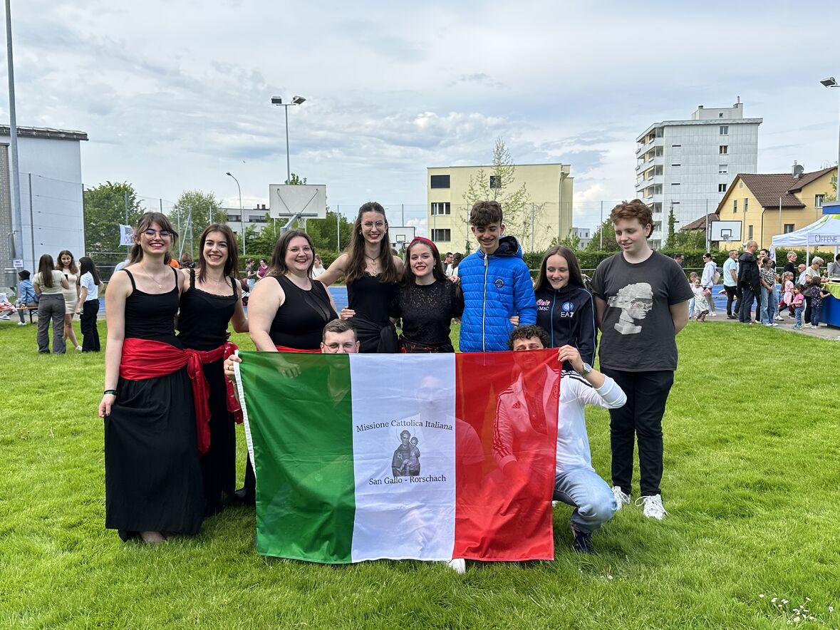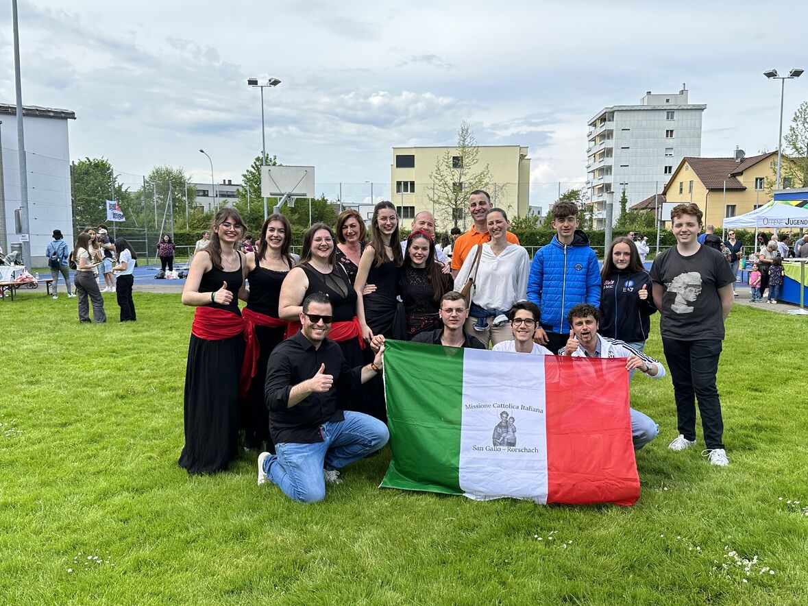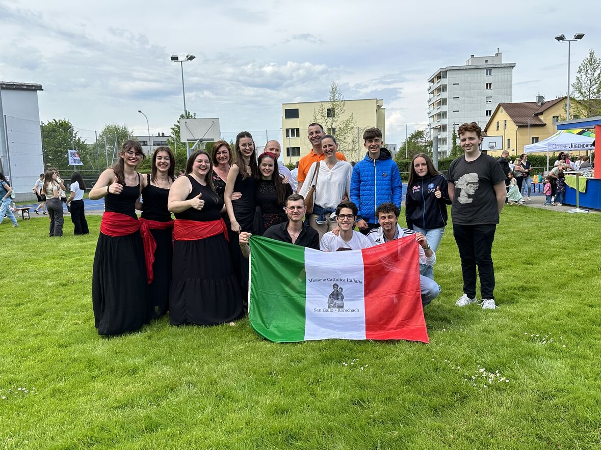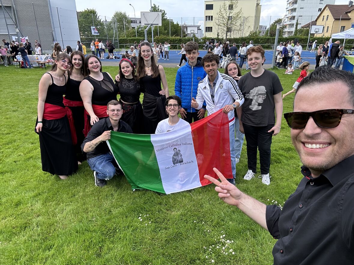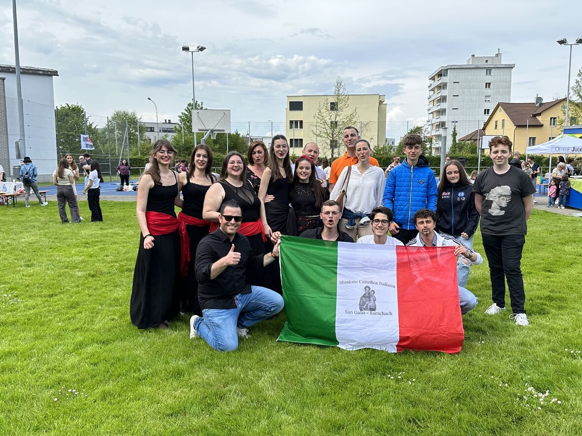 Giornata di Grazia del nostro Gruppo Giovani "Gio's Group" che ha partecipato al Jugend Kulturfest organizzato dalla Città di Goldach. I nostri amati giovani hanno preparato prelibatezze della Cultura Culinaria Italiana sistemate in uno Stand preparato per l'occasione. Le molte persone presenti hanno potuto gustare pizza, lasagne e cannoli che i nostri giovani hanno preparato con tanto amore. Nel primo pomeriggio ci si è potuto beare dello spettacolo di danze tipiche delle varie nazionalità. Il Gio's Group ha cantato a squarcia gola, con mano sul petto e orgoglio alle stelle il nostro amato Inno Nazionale e subito dopo hanno presentato la Pizzica Pugliese riscontrando un largo consenso con applausi e acclamazioni. Bravi Ragazzi!