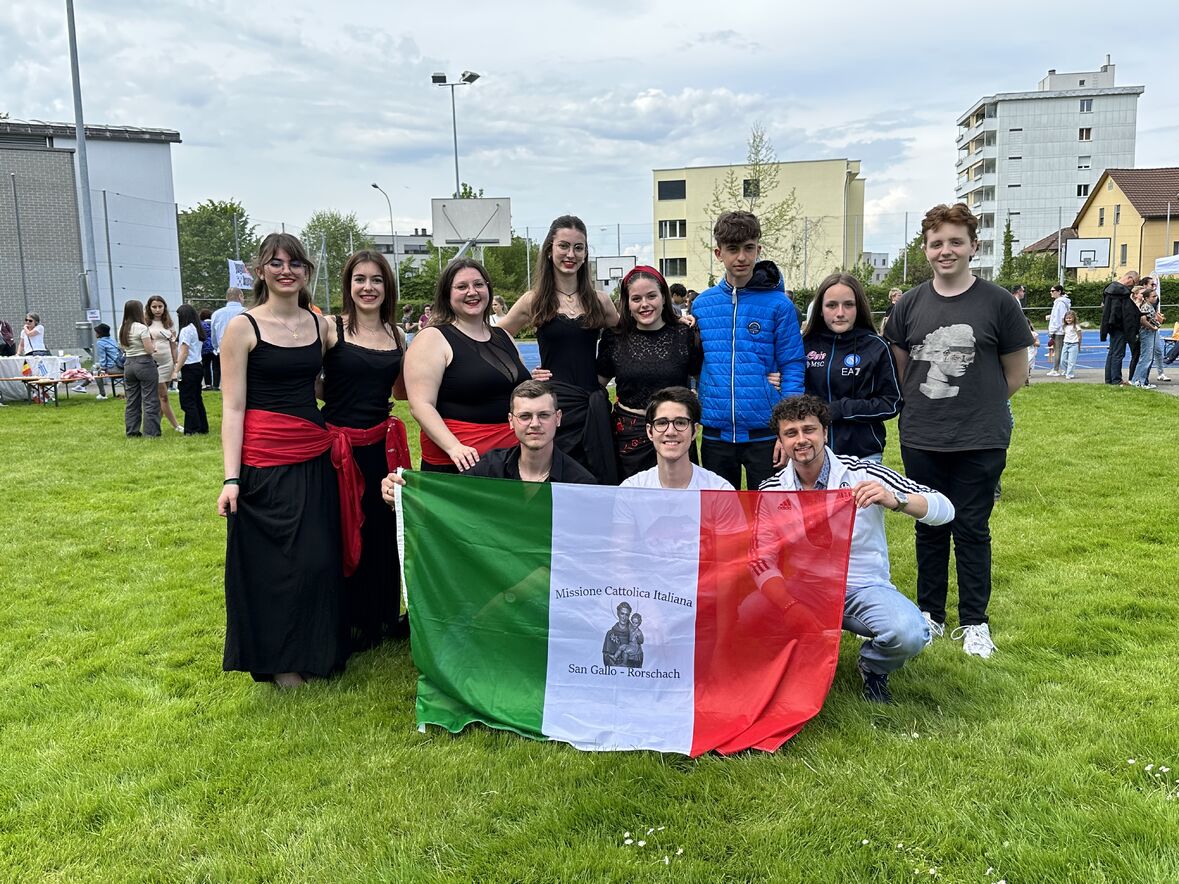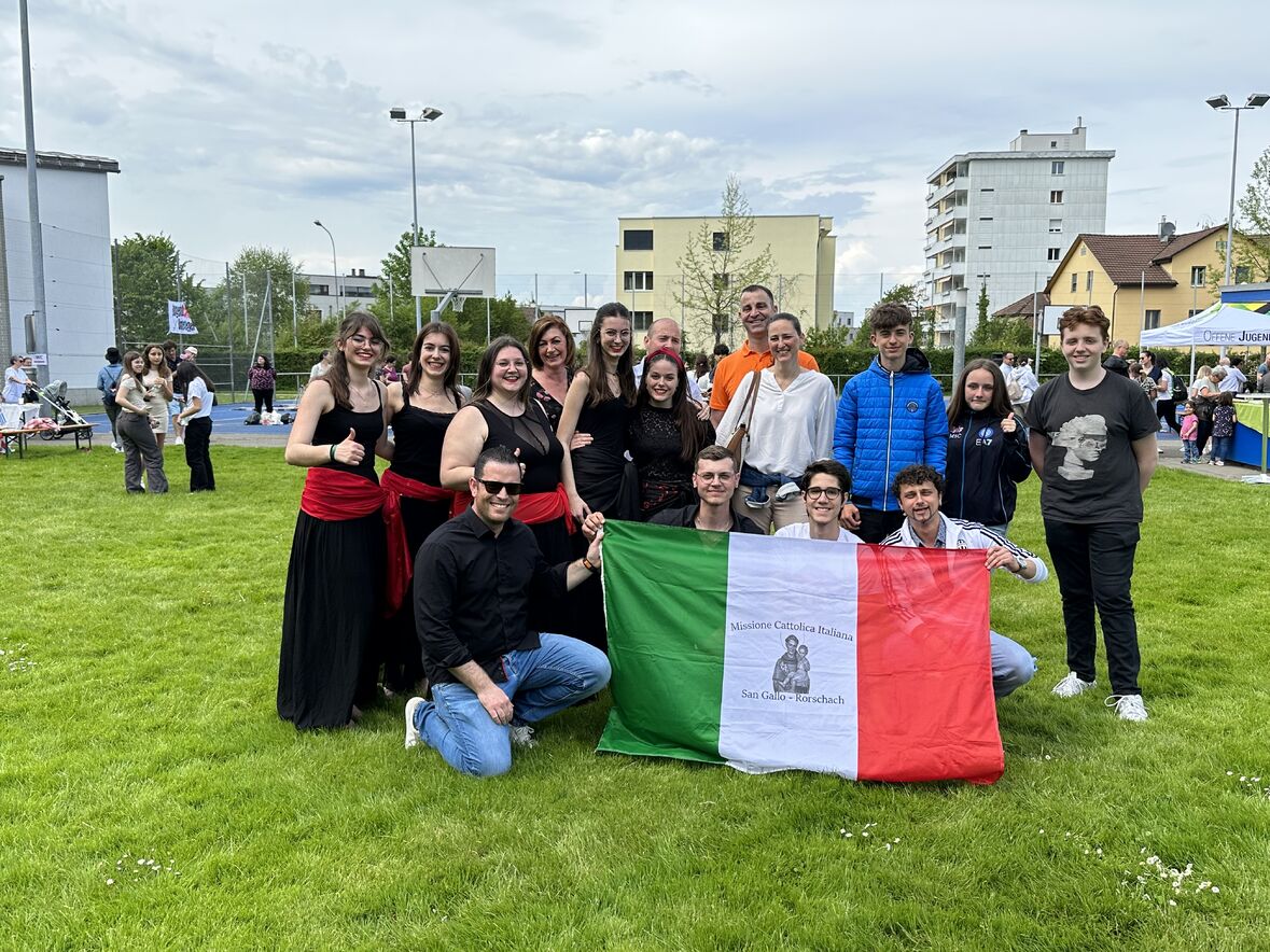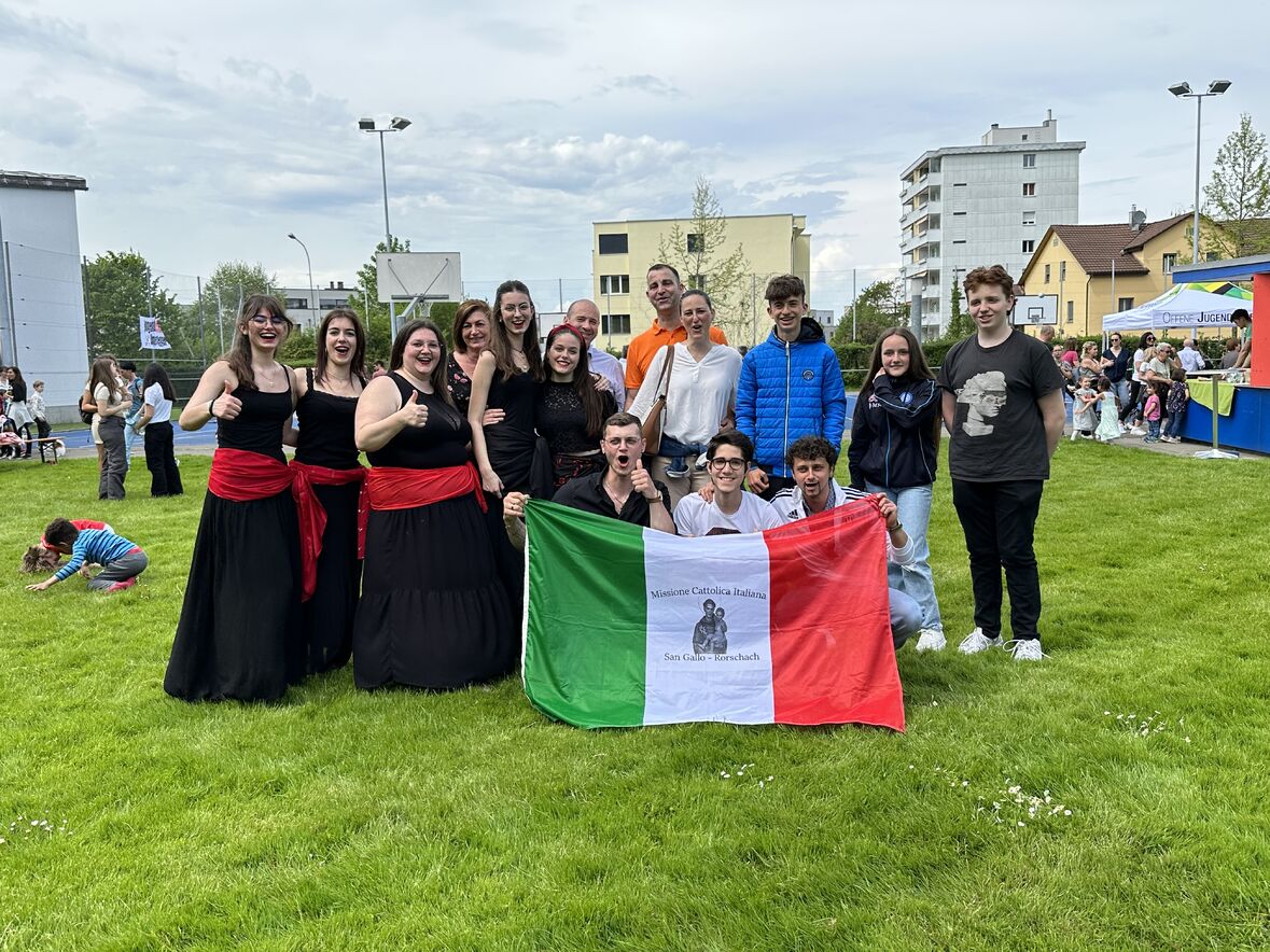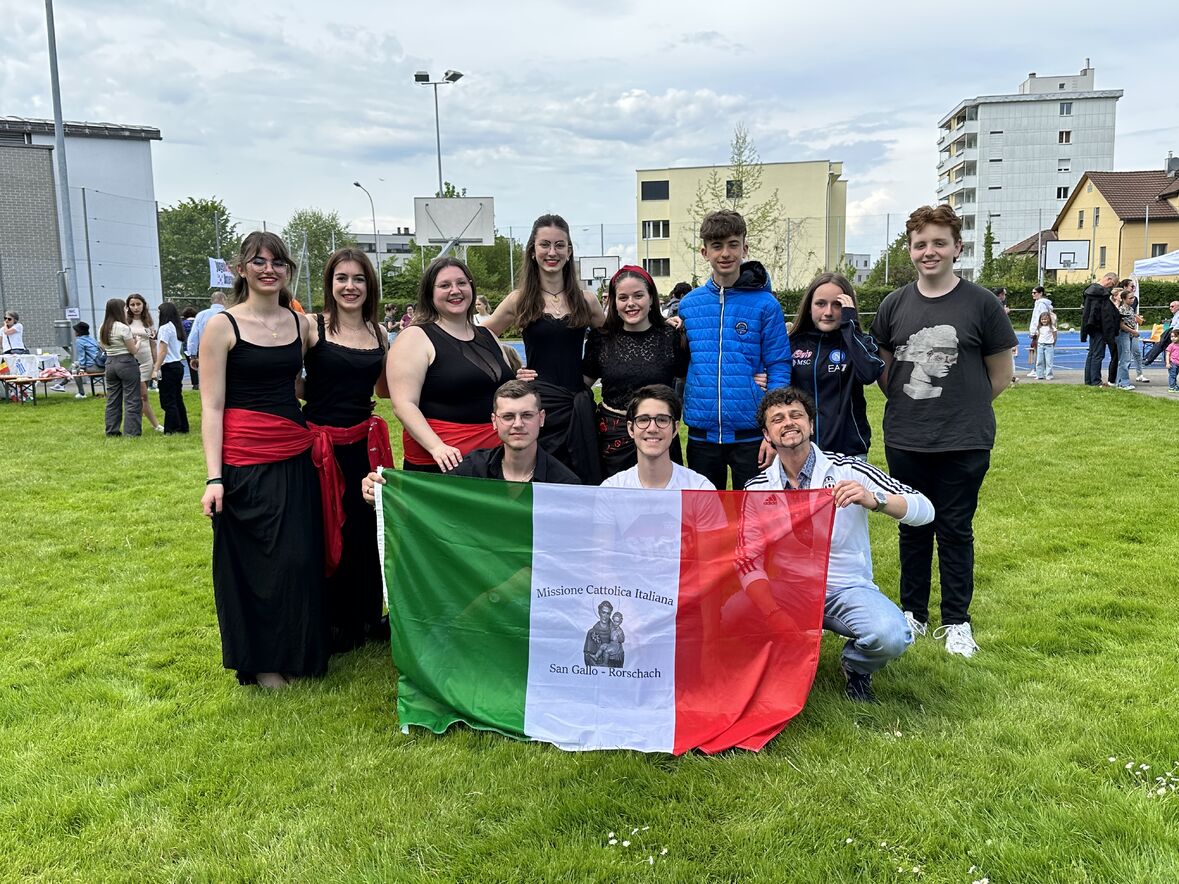 Giornata di Grazia del nostro Gruppo Giovani "Gio's Group" che ha partecipato al Jugend Kulturfest organizzato dalla Città di Goldach. I nostri amati giovani hanno preparato prelibatezze della Cultura Culinaria Italiana sistemate in uno Stand preparato per l'occasione. Le molte persone presenti hanno potuto gustare pizza, lasagne e cannoli che i nostri giovani hanno preparato con tanto amore. Nel primo pomeriggio ci si è potuto beare dello spettacolo di danze tipiche delle varie nazionalità. Il Gio's Group ha cantato a squarcia gola, con mano sul petto e orgoglio alle stelle il nostro amato Inno Nazionale e subito dopo hanno presentato la Pizzica Pugliese riscontrando un largo consenso con applausi e acclamazioni. Bravi Ragazzi!