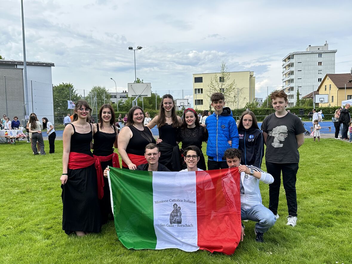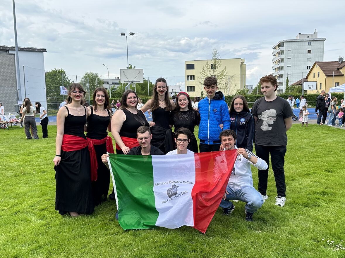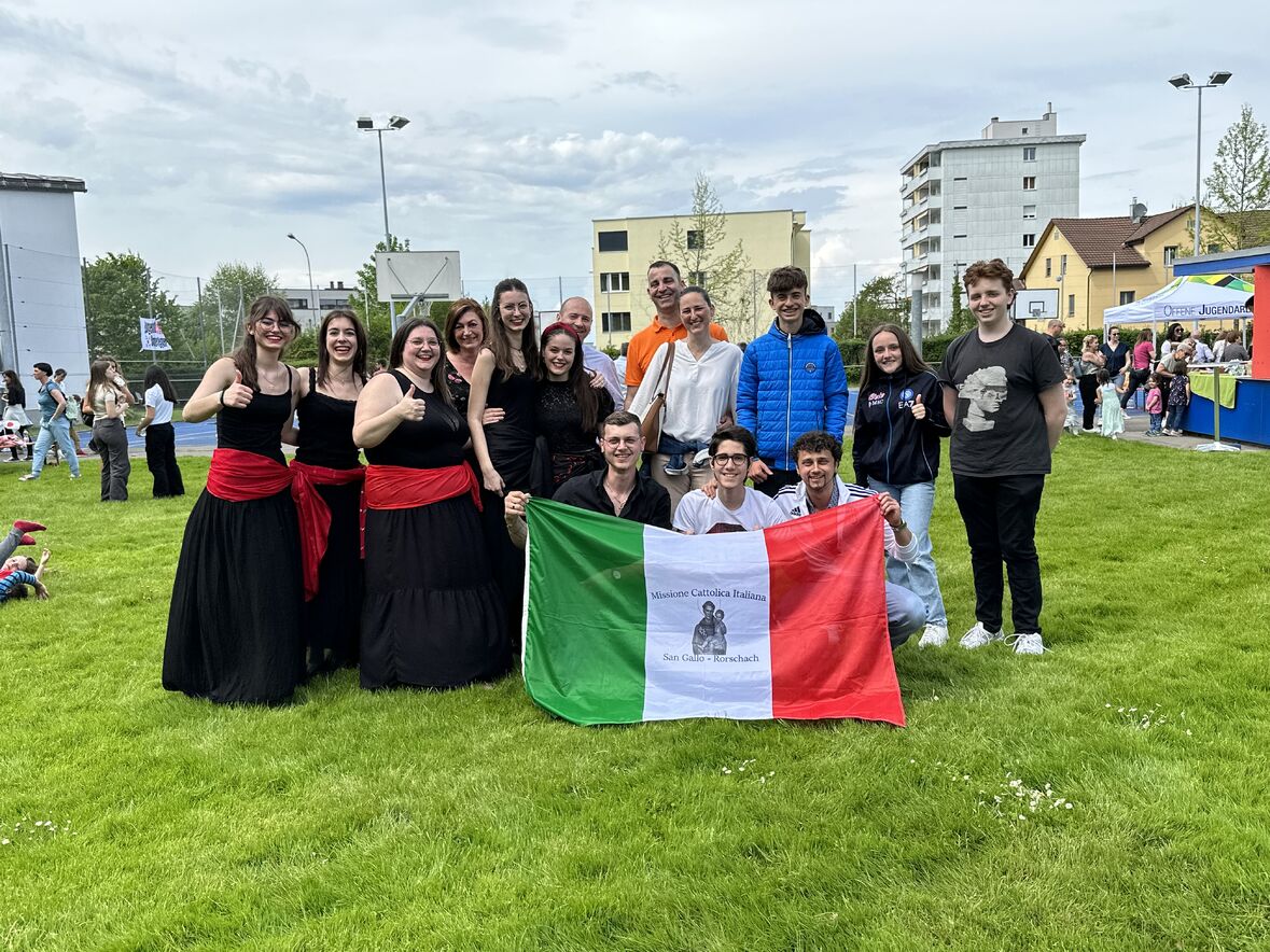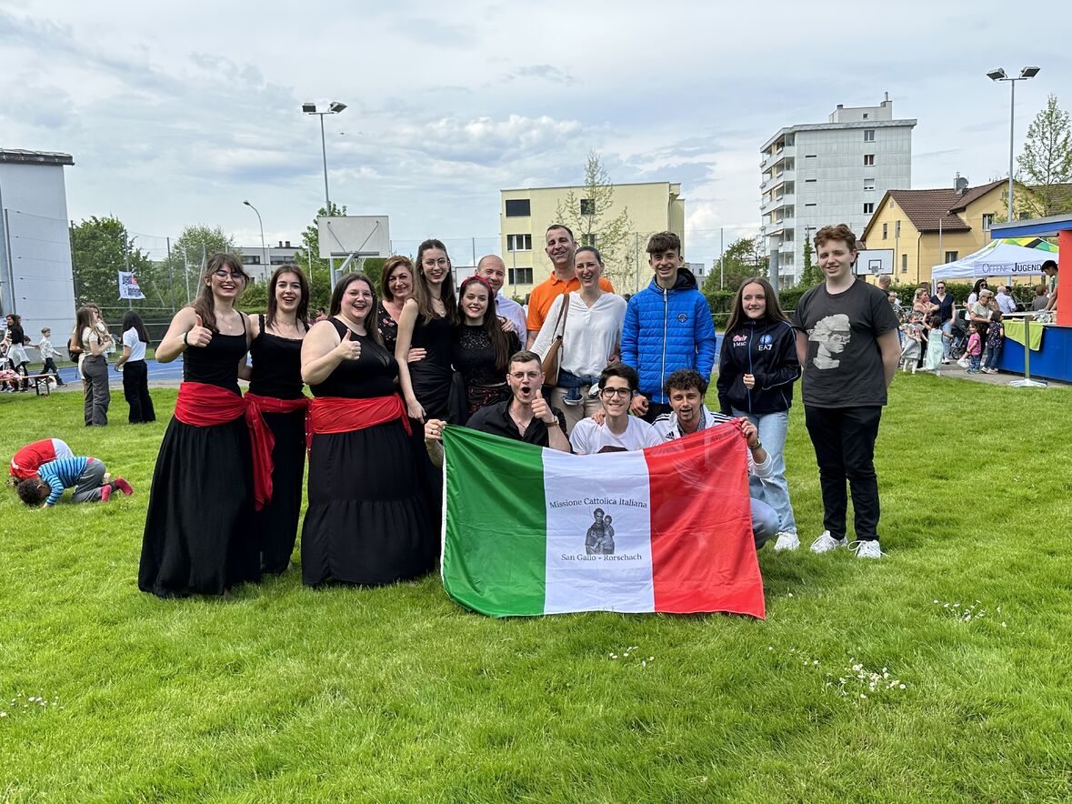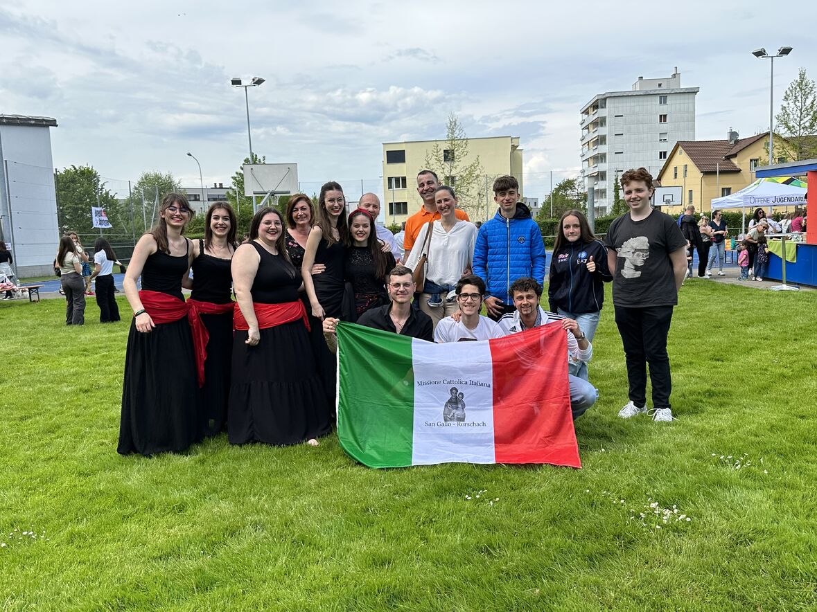 Giornata di Grazia del nostro Gruppo Giovani "Gio's Group" che ha partecipato al Jugend Kulturfest organizzato dalla Città di Goldach. I nostri amati giovani hanno preparato prelibatezze della Cultura Culinaria Italiana sistemate in uno Stand preparato per l'occasione. Le molte persone presenti hanno potuto gustare pizza, lasagne e cannoli che i nostri giovani hanno preparato con tanto amore. Nel primo pomeriggio ci si è potuto beare dello spettacolo di danze tipiche delle varie nazionalità. Il Gio's Group ha cantato a squarcia gola, con mano sul petto e orgoglio alle stelle il nostro amato Inno Nazionale e subito dopo hanno presentato la Pizzica Pugliese riscontrando un largo consenso con applausi e acclamazioni. Bravi Ragazzi!