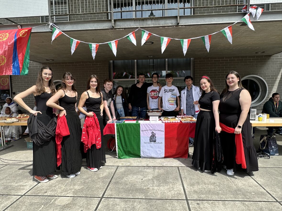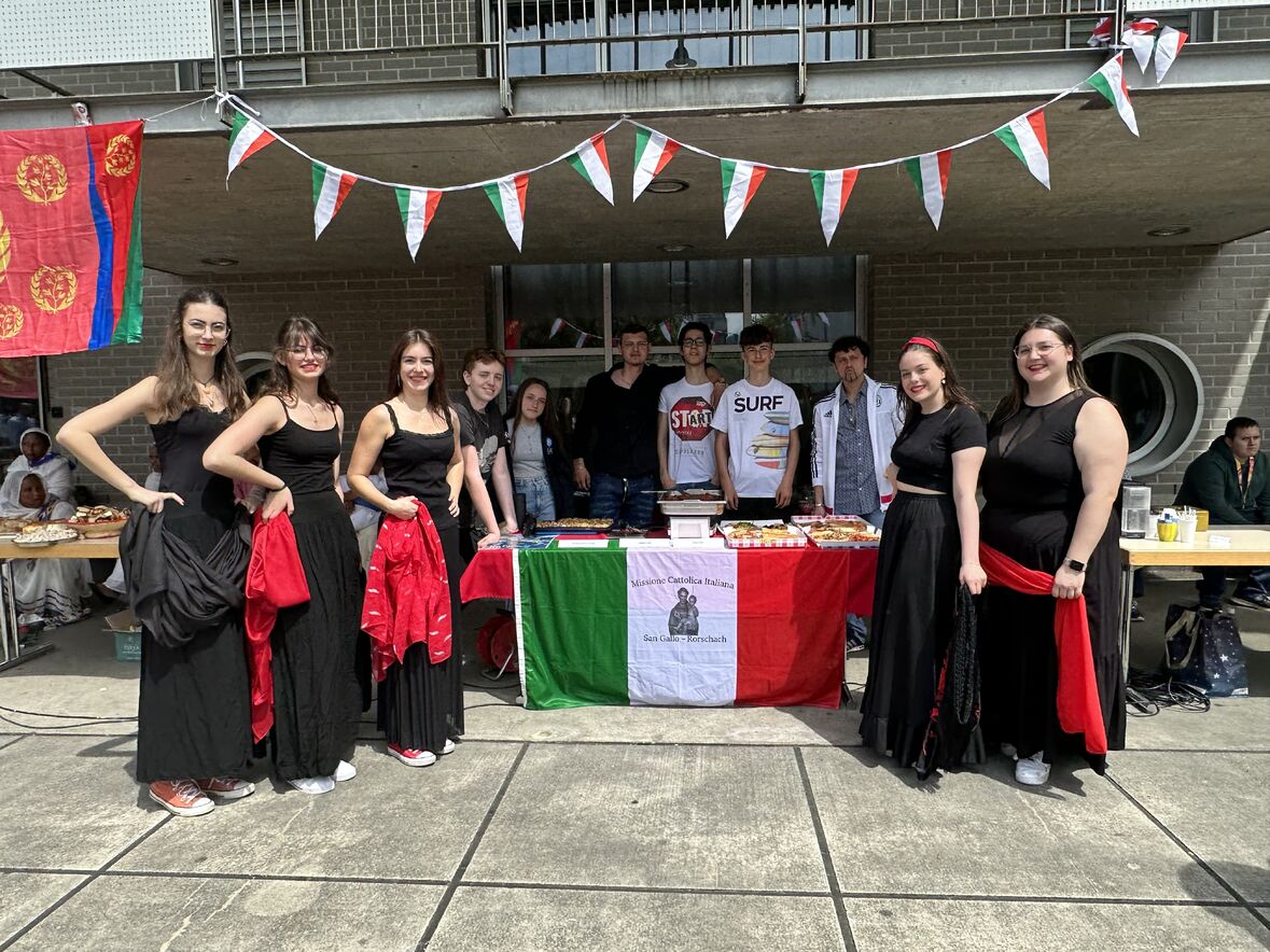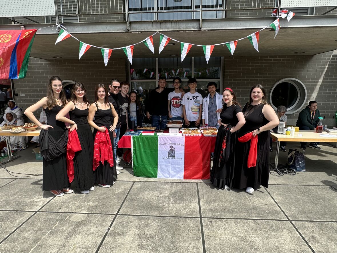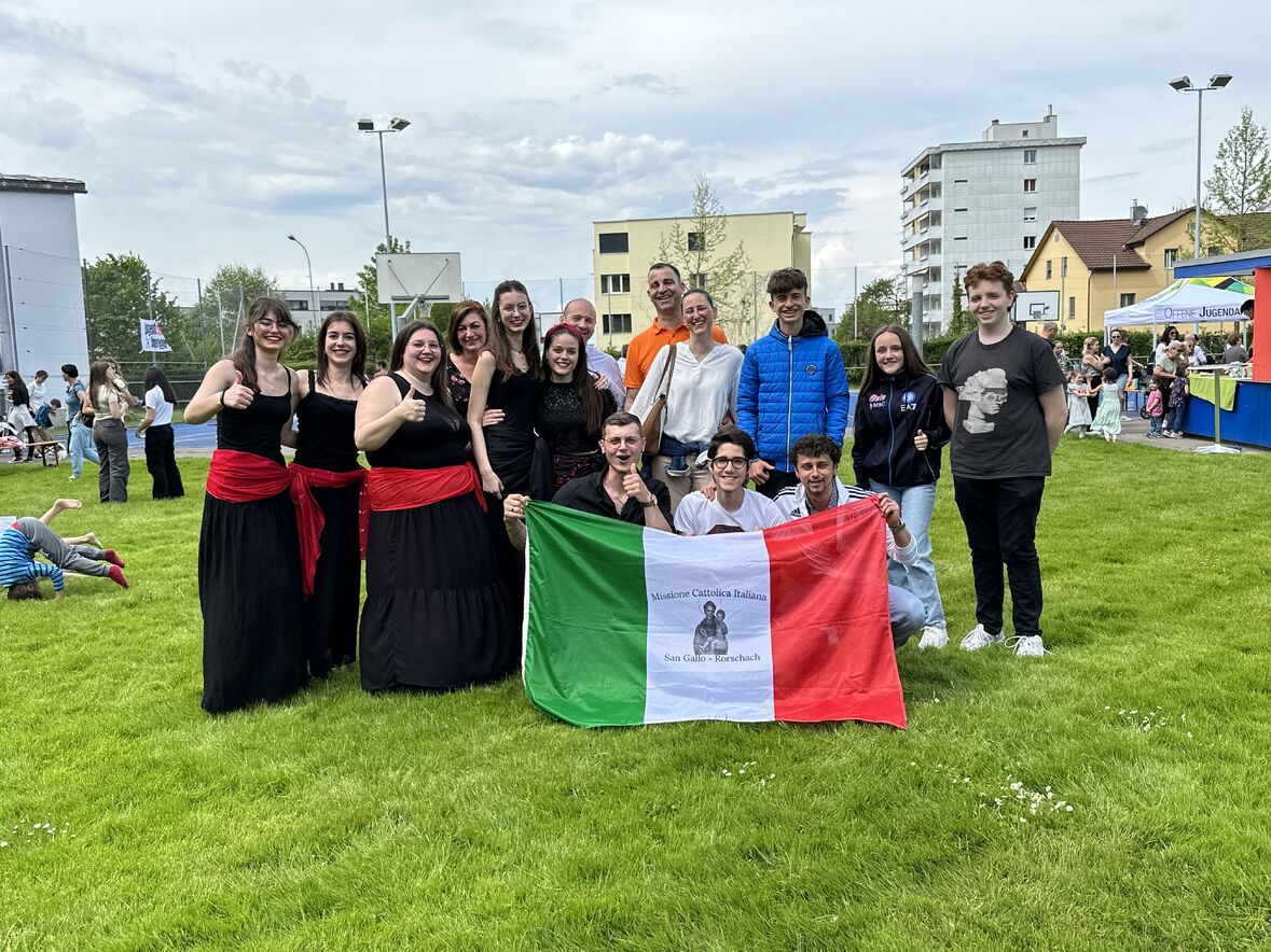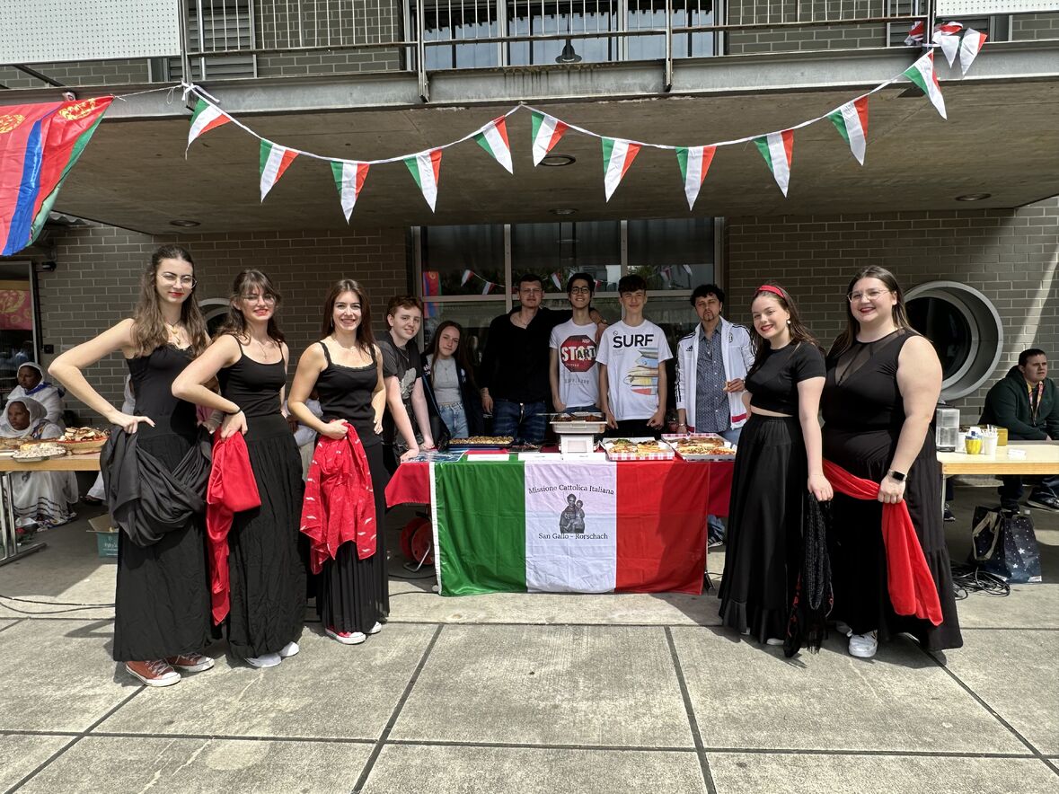 Giornata di Grazia del nostro Gruppo Giovani "Gio's Group" che ha partecipato al Jugend Kulturfest organizzato dalla Città di Goldach. I nostri amati giovani hanno preparato prelibatezze della Cultura Culinaria Italiana sistemate in uno Stand preparato per l'occasione. Le molte persone presenti hanno potuto gustare pizza, lasagne e cannoli che i nostri giovani hanno preparato con tanto amore. Nel primo pomeriggio ci si è potuto beare dello spettacolo di danze tipiche delle varie nazionalità. Il Gio's Group ha cantato a squarcia gola, con mano sul petto e orgoglio alle stelle il nostro amato Inno Nazionale e subito dopo hanno presentato la Pizzica Pugliese riscontrando un largo consenso con applausi e acclamazioni. Bravi Ragazzi!
