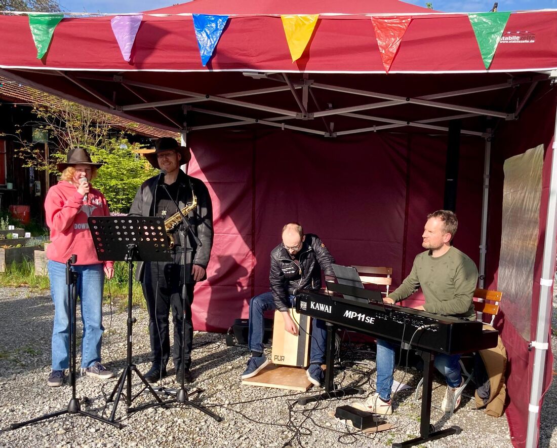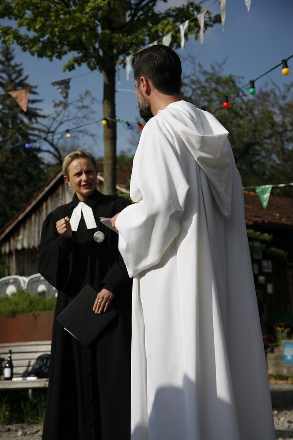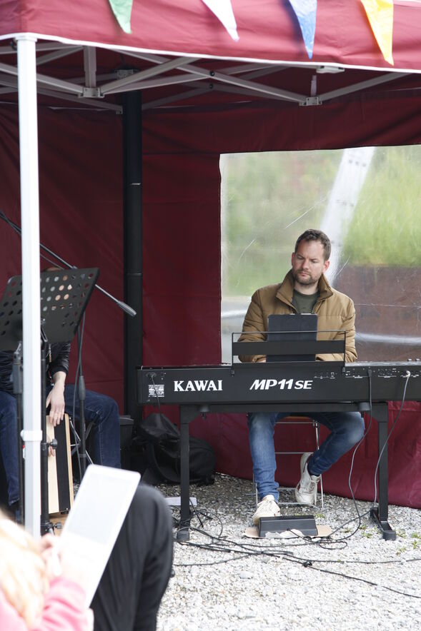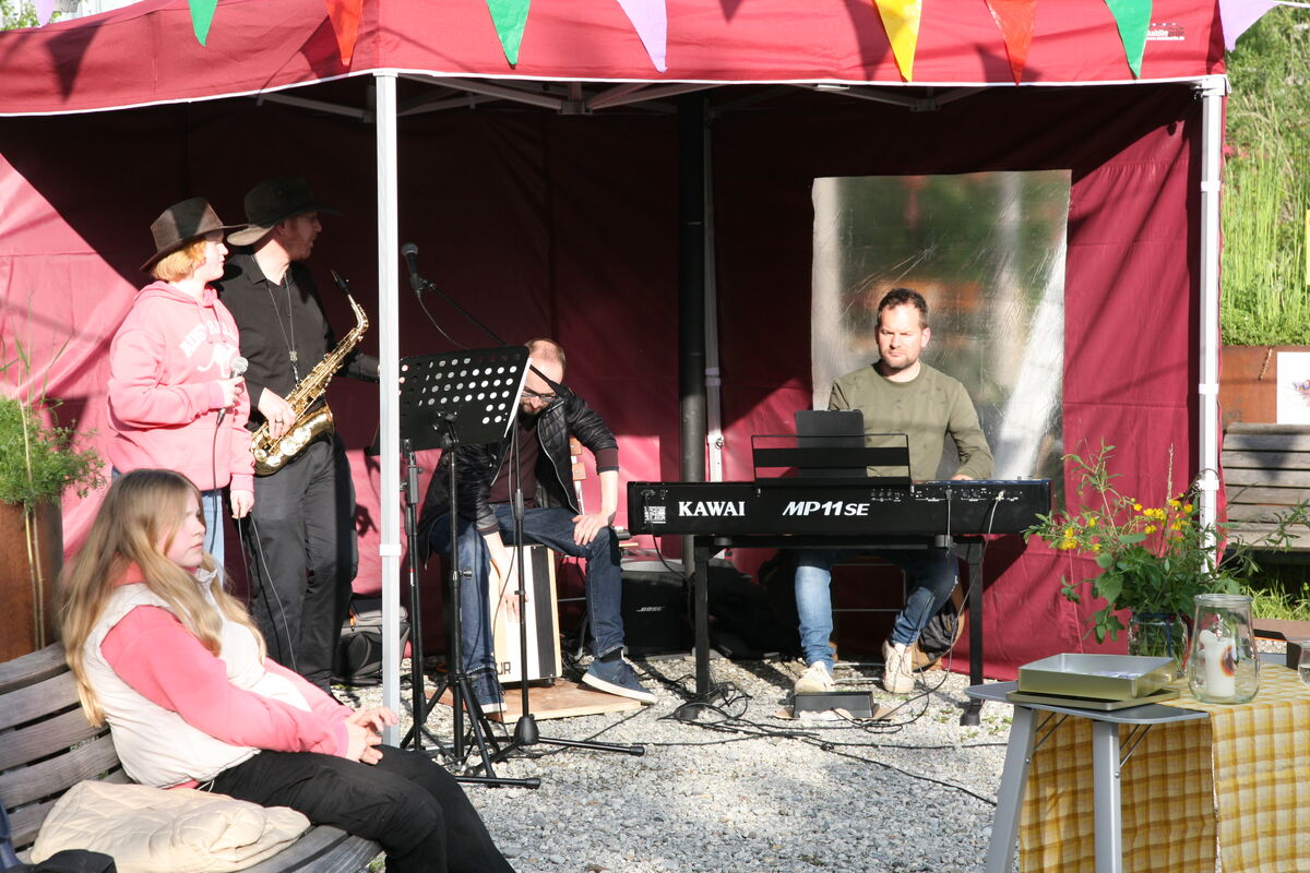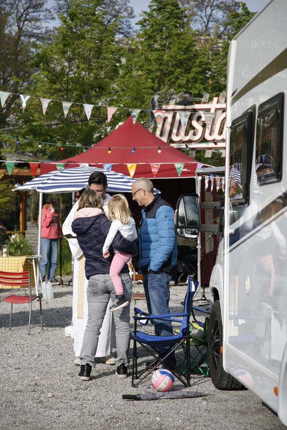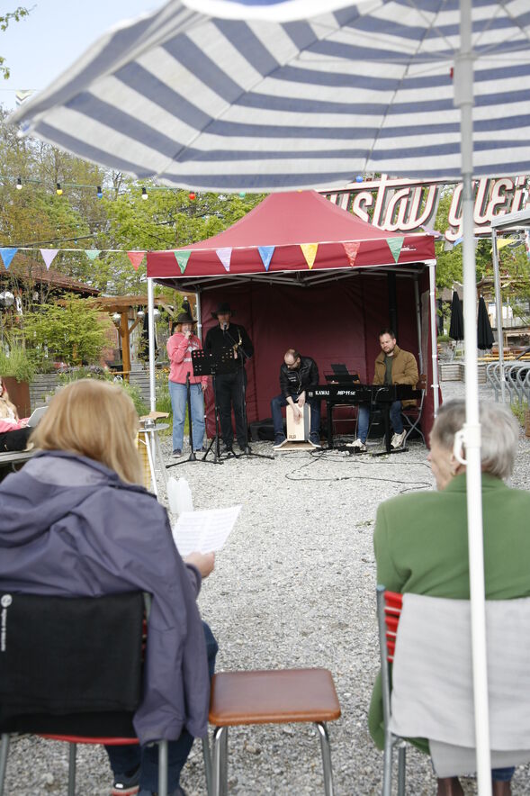 Neben einer Einzelsegnung für Camper:innen mit Segens-Vignette und Segens-Button gab es tolle Musik von Helena, Christian, Manuel und Roman und sogar einen Camper-Betruf, den Pfrn. Andrea Weihnhold extra für diese Segnung verfasst hat. Von Bulli über Wohnmobil bis Velo war alles mit dabei. Auch das Wetter hat mitgespielt und so konnten wir gemütlich bei Sonnenschein feiern - jede:r im eigenen Campungstuhl.
