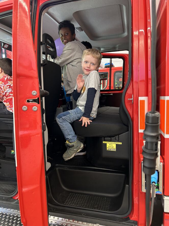 Diesmal war die Kirche Kunterbunt bei der städtischen Feuerwehr zu Besuch.