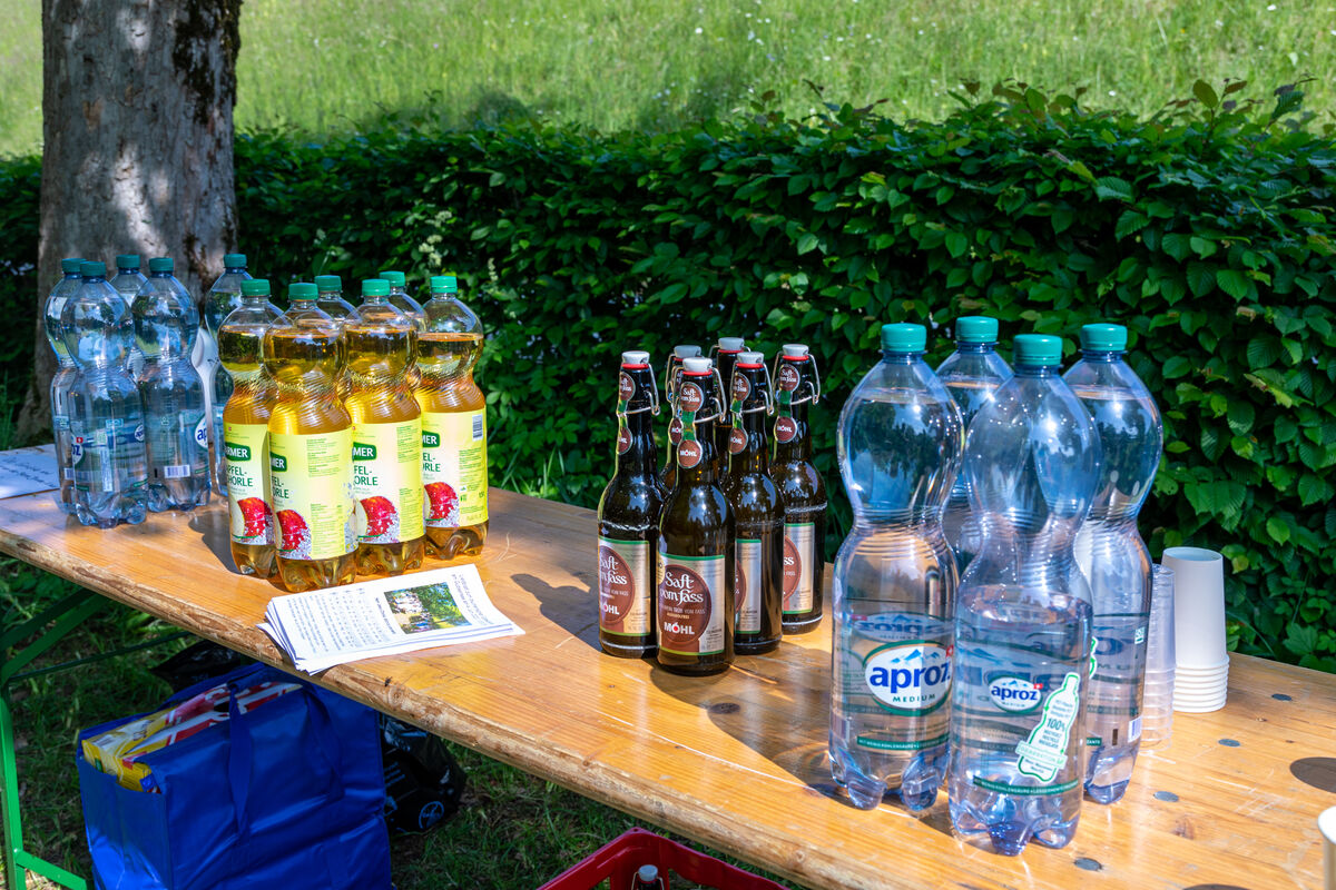 Im Anschluss an den Gottesdienst, bei dem immer wieder Passanten stehen blieben und neugierig zuschauten, gab es bei einem gemütlichen Zusammensein die Möglichkeit, sich mit einem Getränk zu erfrischen oder sein selber gebrachtes Fleisch/Vegi zu konsumieren.
