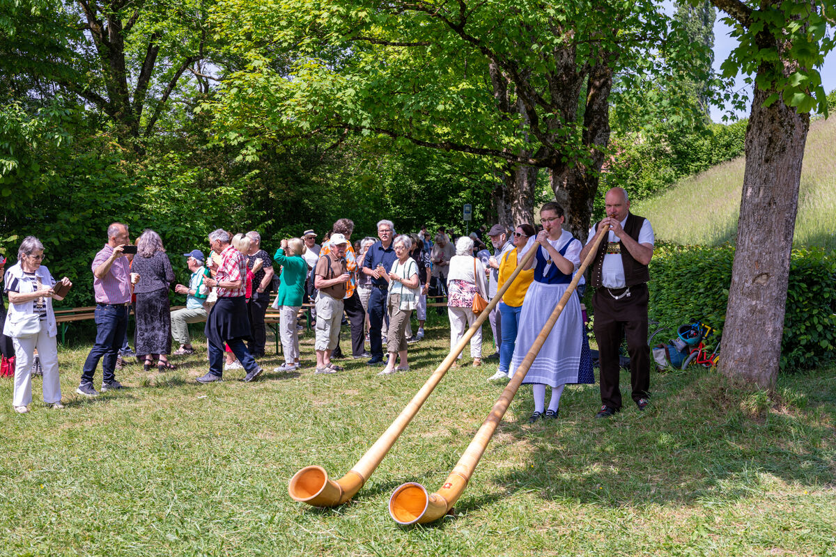 An einem wunderschönen Sonntagmorgen feierten wir gemeinsam den alle zwei Jahre stattfindenen ökum. Feldgottesdienst am Gübsensee. Über 100 Mitfeiernden fanden sich am Gübsensee ein, das musikalisch vom Straubenzeller Bläserkreis und vom Alphornduo Echo Freud Herisau umrahmt wurde. Der Gottesdienst stand am Dreifaltigkeitssonntag unter dem Motto „Begeisterung“. Passend dazu steckt im diesem Wort das Wort GEIST drin. Der Heilige Geist ist die Kraft der Liebe und des Lebens und zeigt sich vielfach in unseren eigenen Begeisterungen, die wir haben.