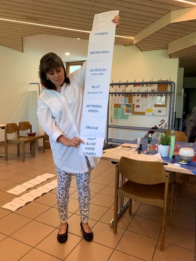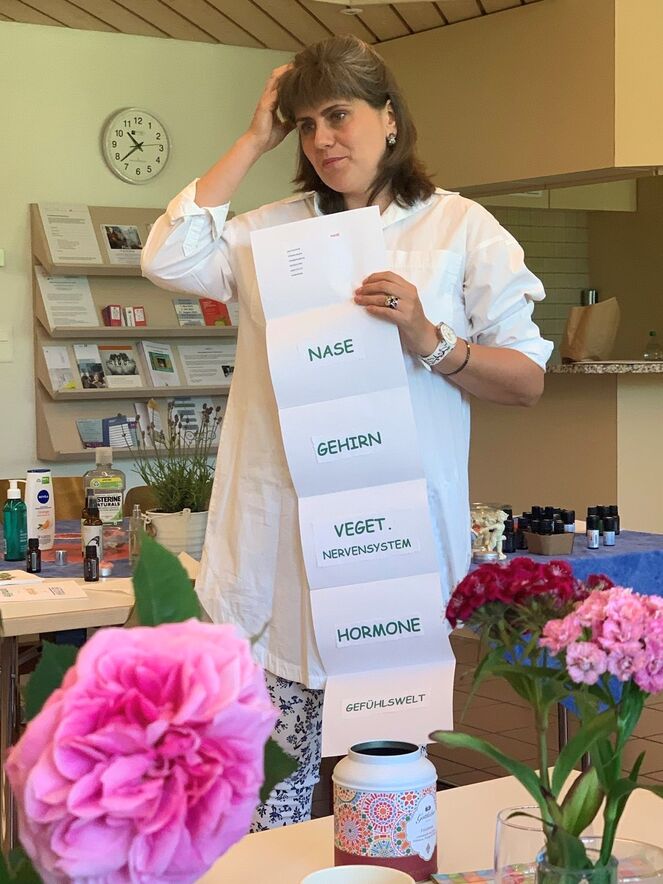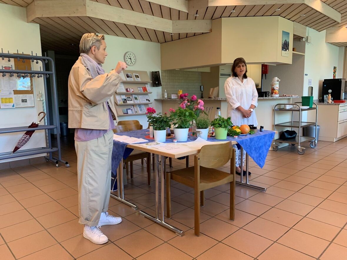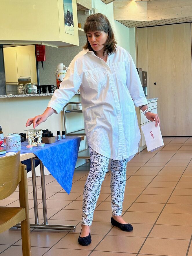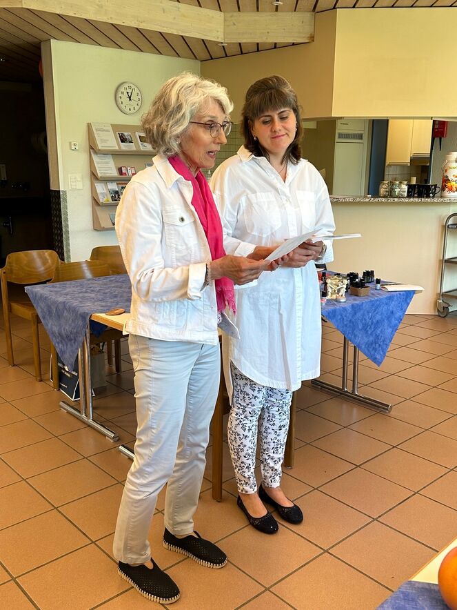 Nach einem gemütlichen Frühstück führte uns Olga Rosenblum ein in die Geheimnisse ätherischer Öle. Sie teilte mit uns ihr Wissen und ihre Düfte. Wir durften schnuppern und ihr auch unsere Fragen stellen. Und sie erzählte uns, dass in der Bibel viele Kräuter und Gewürze vorkommen, die als Öle verwendet wurden.