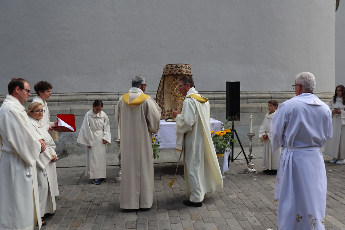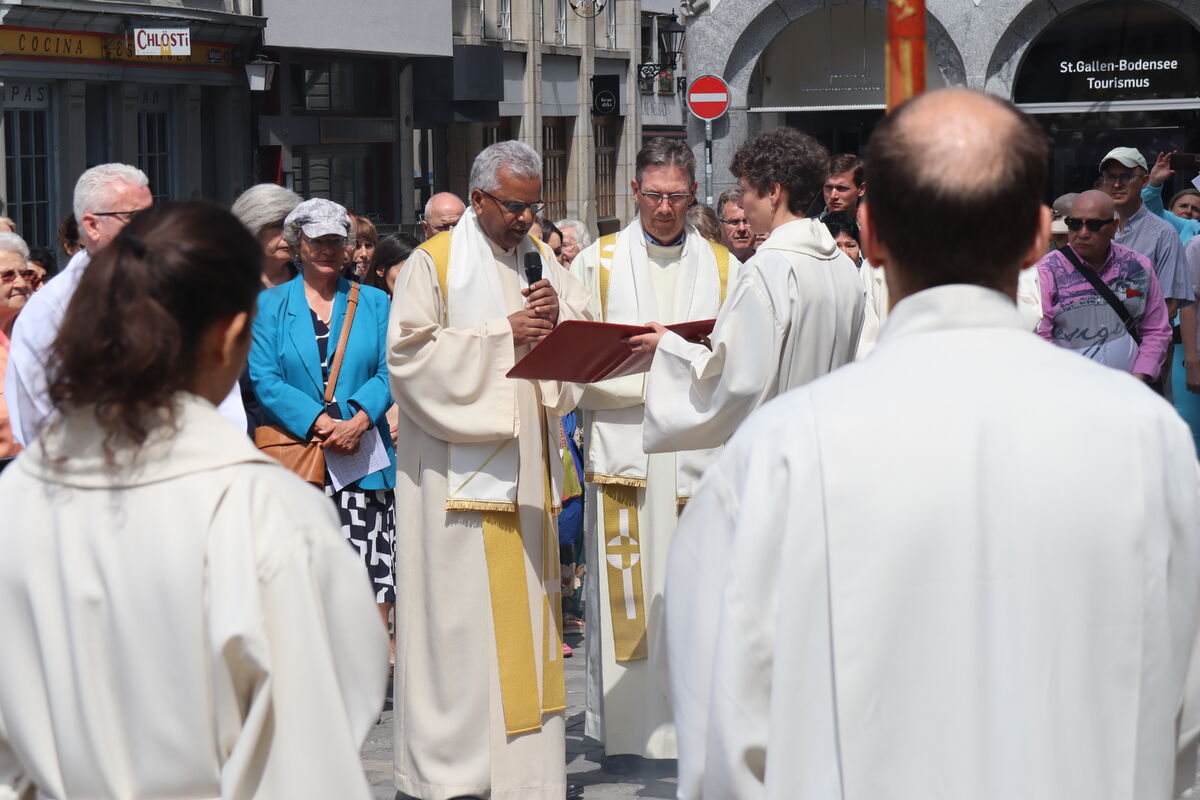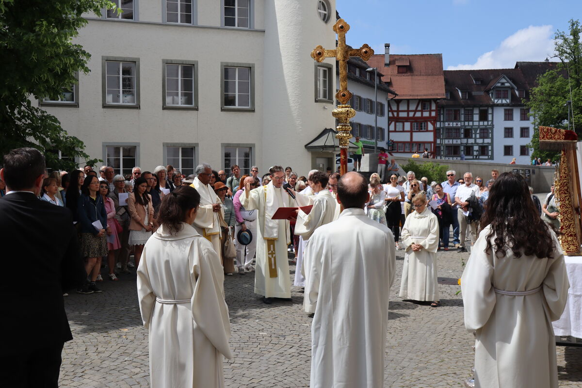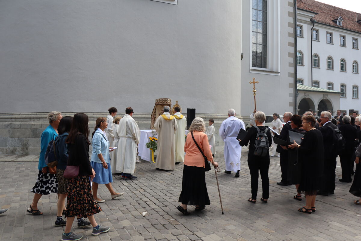 Zusammen mit unseren italienisch- und spanischsprachigen Mitchristen feierten wir Fronleichnam oder auch «Hochfest des Leibes und Blutes Christi» genannt. Wir feiern dann die Gegenwart von Jesus Christus im Sakrament der Eucharistie. Wort und Sakrament können nicht drinnen bleiben; sie müssen hinaus in die Welt. Deshalb zogen wir nach dem festlichen Hauptgottesdienst bei wunderschönem Wetter in einer Prozession um die Kathedrale.