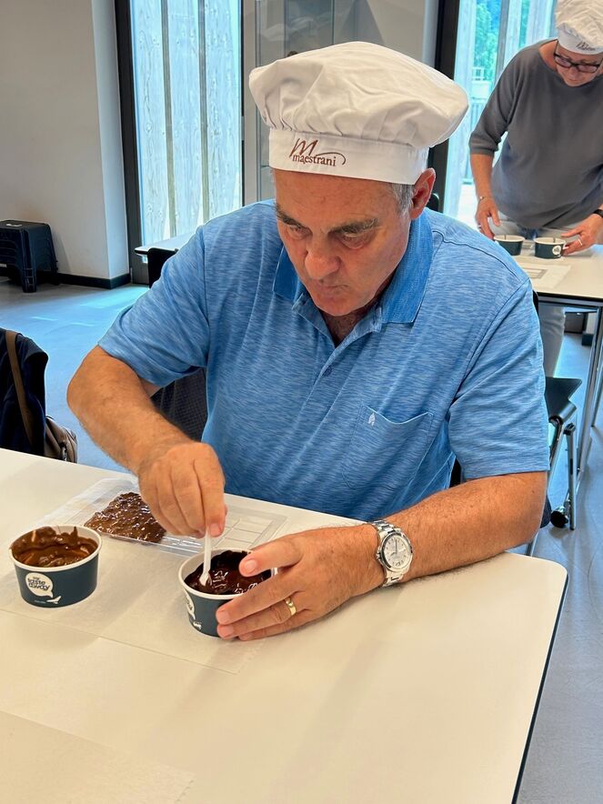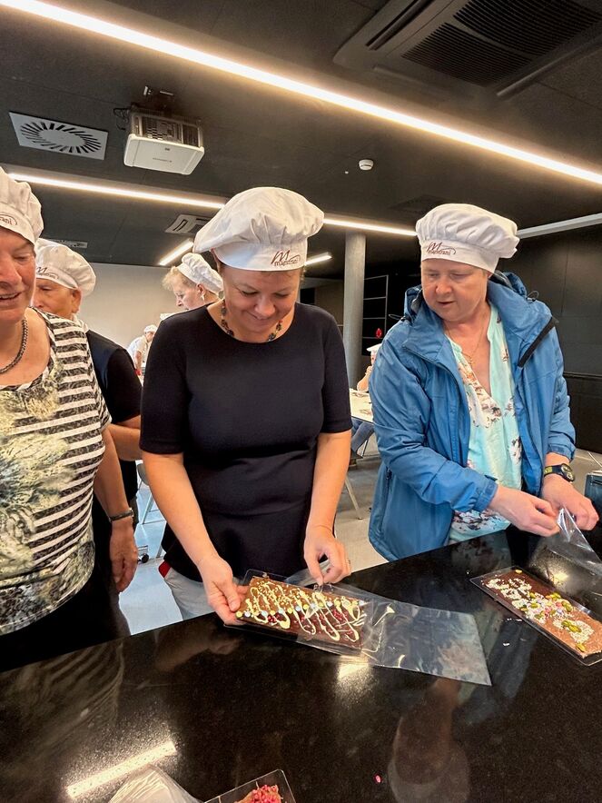 Eine bunt zusammengewürfelte und aufgestellte Gruppe machte sich am Samstag, 1. Juli mit dem Zug auf zur Besichtigung der Maestrani in Flawil. Unter fachkundiger Anleitung durfte jede Teilnehmerin und jeder Teilnehmer eine eigene Tafel Schokolade kreieren. Die kreativen Endprodukte zeigen mit wie viel Liebe und Eifer sie hergestellt wurden. Nach einem interessanten, informativen und abwechslungsreichen Rundgang durch den Showraum, wurde noch fleissig im Shop für die lieben Daheimgebliebenen, aber auch für ein eigenes Bettmüpfeli eingekauft.