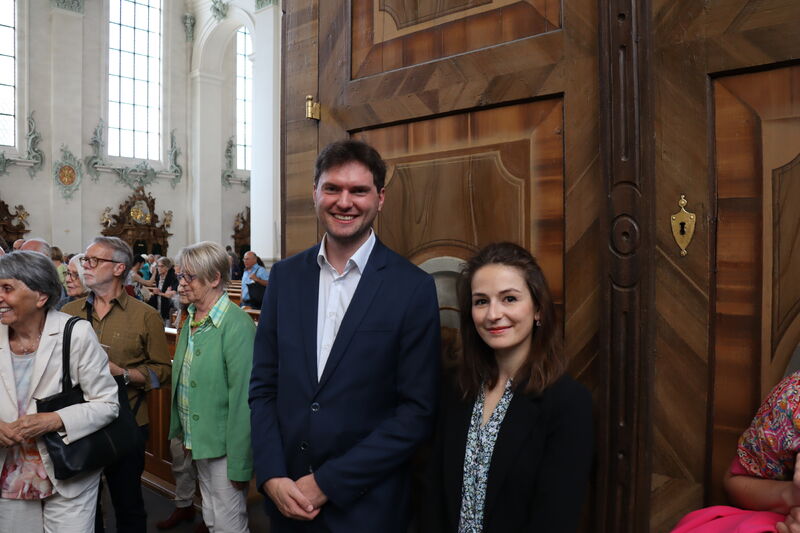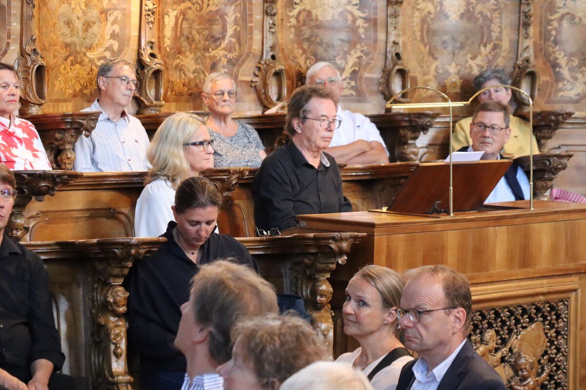 Willibald Guggenmos zog - im wahrsten Sinne des Wortes – nochmals alle Register. Es erklang ein grossartiges Konzert mit verschiedenen Werken von Johannes Brahms bis Max Reger an der Chor- sowie an der Hauptorgel. Wie bei jedem Konzert stand ihm seine Ehefrau Maria mit Blättern und Registrieren unterstützend zur Seite. Der Künstler liess die Instrumente nochmals erbeben, aber auch feine, melancholische Klänge als allerletztes Stück erklingen.
