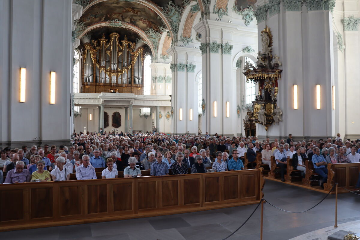 In einem bis auf den allerletzten Platz gefüllten Dom genossen weit über 1000 Gäste das letzte Konzert von Willibald Guggenmos als Domorganist - zum Abschied nach 19 Jahren an der Kathedrale St.Gallen. Der Meister der Königin der Instrumente feierte zugleich seinen 66. Geburtstag.