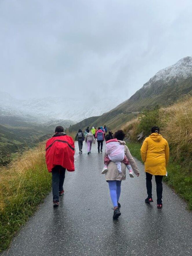 Zusammen mit 43 Teilnehmer*innen und dem 10-köpfigen Leitungsteam haben wir vom 5. - 11. August eine intensive Ferienwoche mit Flüchtlings- und Migrantenfamilien in Tschamut-Selva erlebt. Wir konnten auf Wanderungen und Ausflügen die schöne Bergregion Disentis, Sedrun, Andermatt erkunden, haben dem Schnee und Wind getrotzt und sogar im kalten Bergbach gebadet. Dieses Jahr war eine der grossen Herausforderungen, den Bedürfnissen aller Kinder und Jugendlichen von 1 - 17 Jahren gerecht zu werden. Wir haben viel Schönes zusammen erlebt; dazu gehörten Highlights wie eine Silent-Disco, eine Schneeballschlacht und der Besuch der Rheinquelle. Während der eritreischen Kaffeezeremonie – bei der die Kaffeebohnen erst geröstet werden – haben sich oft interessante Gespräche ergeben. Und natürlich hat die – für die Kleinen – sehr wichtige Chüggelibahn nicht fehlen dürfen, die immer am ersten Tag der Ferien aufgebaut wird. Am Ende der Woche waren die Tage wie immer viel zu schnell verflogen und die Familien und Kinder haben Freude, Wertschätzung und Dankbarkeit mit vielen Worten, Briefen und Umarmungen gezeigt.