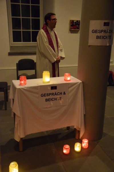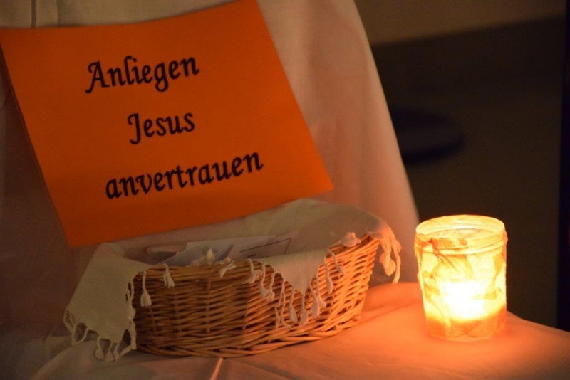 "Grüezi, möchten Sie hier in der Kapelle eine Kerze anzünden?" so werden Passantinnen und Passanten eingeladen einen Moment der Stille und Besinnung in der Schutzengelkapelle zu erleben. Wer möchte bekommt direkt eine kleine Kerze in die Hand und kann damit in die Kapelle. Diese ist schön gestaltet und stimmungsvolle Livemusik lädt zum mitsingen ein. Das Allerheiligste ist ausgesetzt.