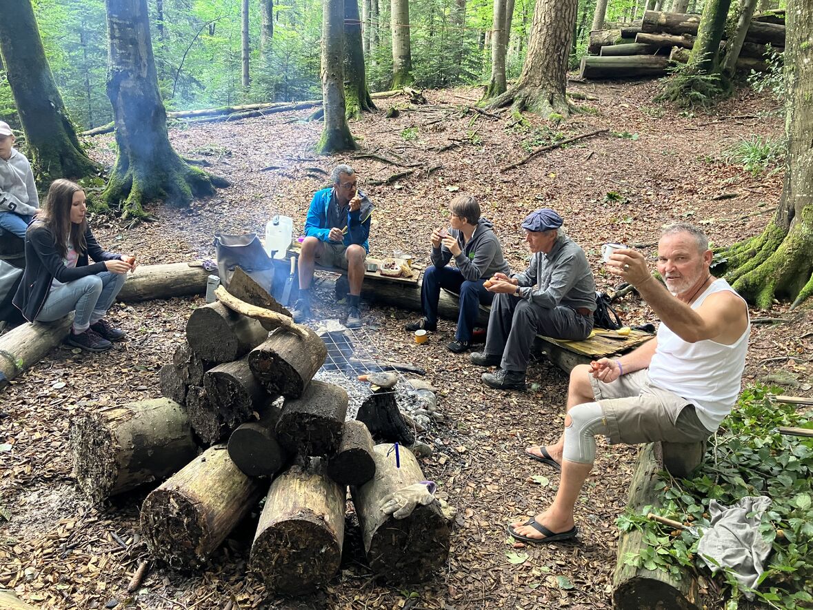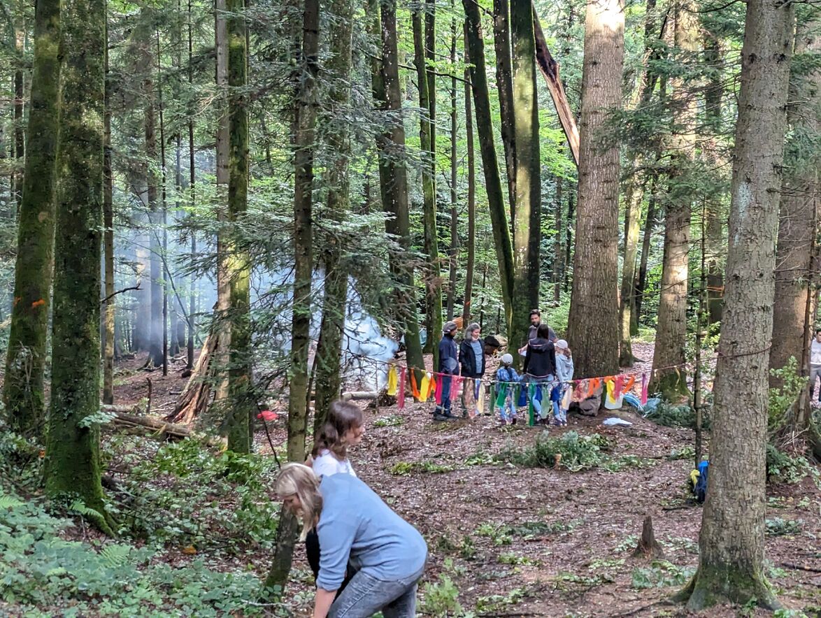 Der Sommer hatte uns in der letzten Woche noch voll im Griff. Die angenehme Kühle, die der Wald der Sommerhitze entgegensetzt, hat uns am Samstag bei WaldGwunder Sommer, an unserem Waldplatz im Hätterenwald willkommengeheissen. Der Sommer ist die Zeit der Reife - wann ist die Zeit reif?! Das ist keine einfache Frage - oder doch?! Wir sind mit dieser Frage bei dieser Ausgabe von WaldGwunder der göttlichen Gegenwart auf der Spur gewesen und haben meditiert, gestaltet, getönt und gebaut. Und so wurde dieser Anlass eine Runde Sache für Gross und Klein!