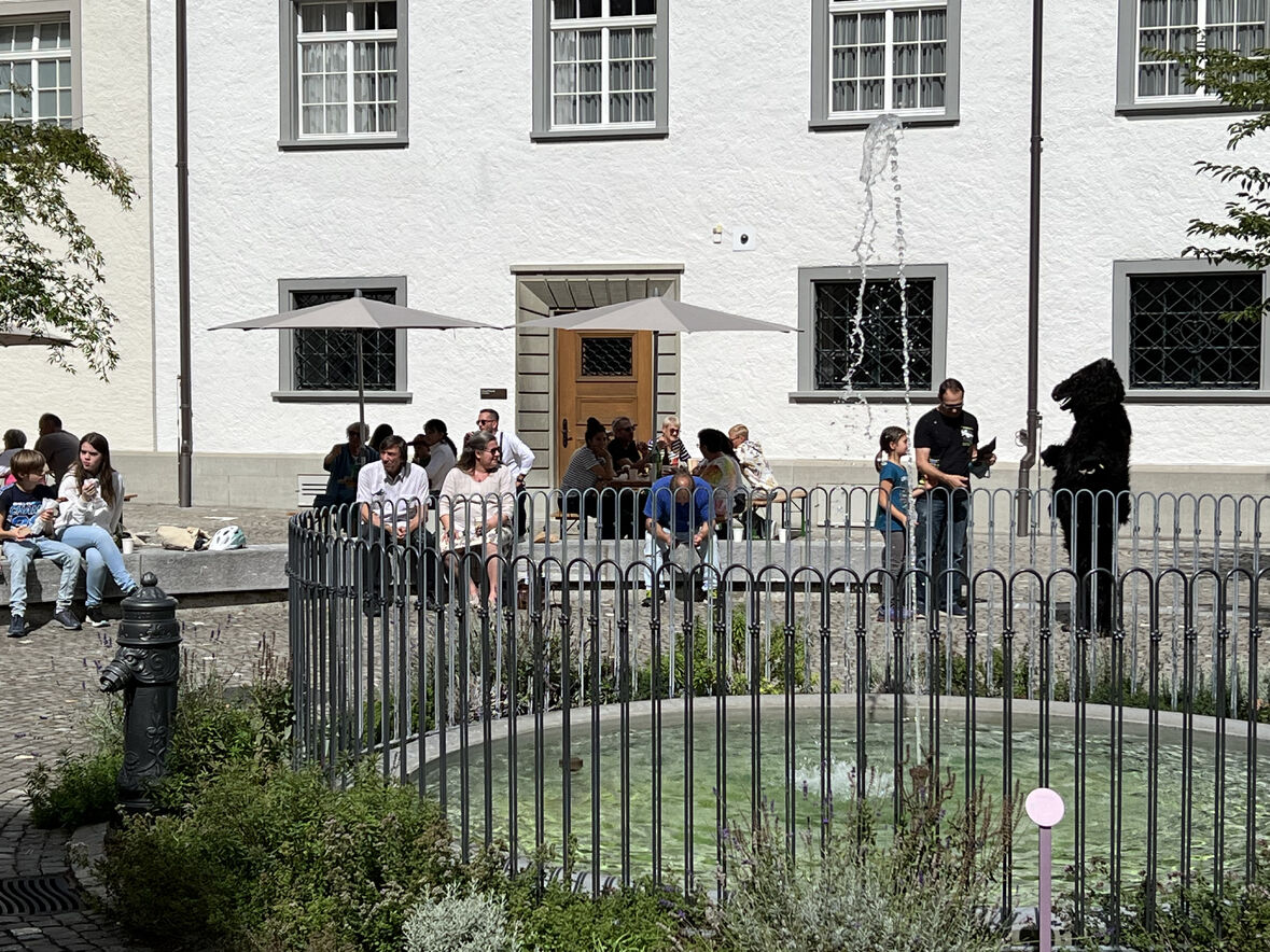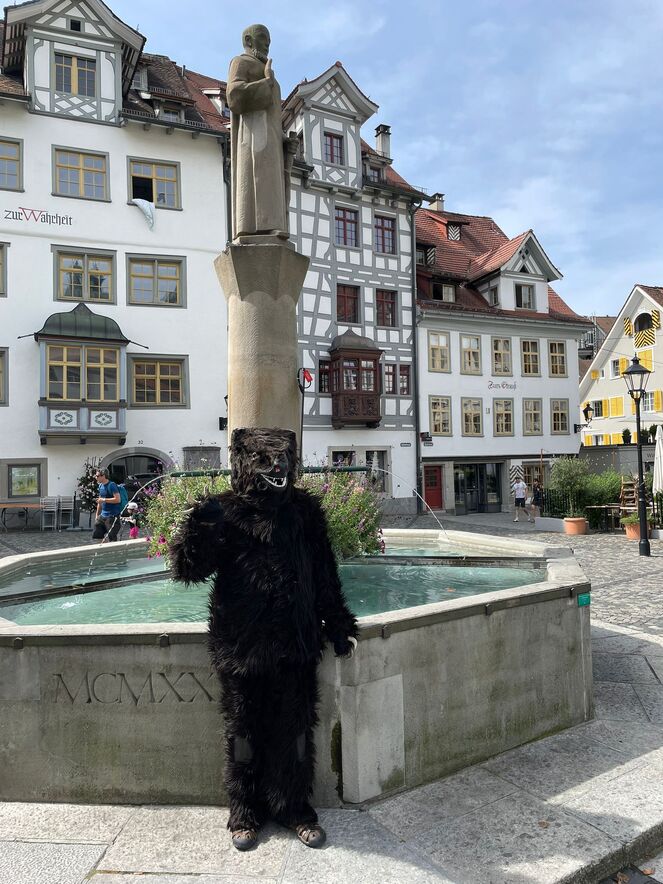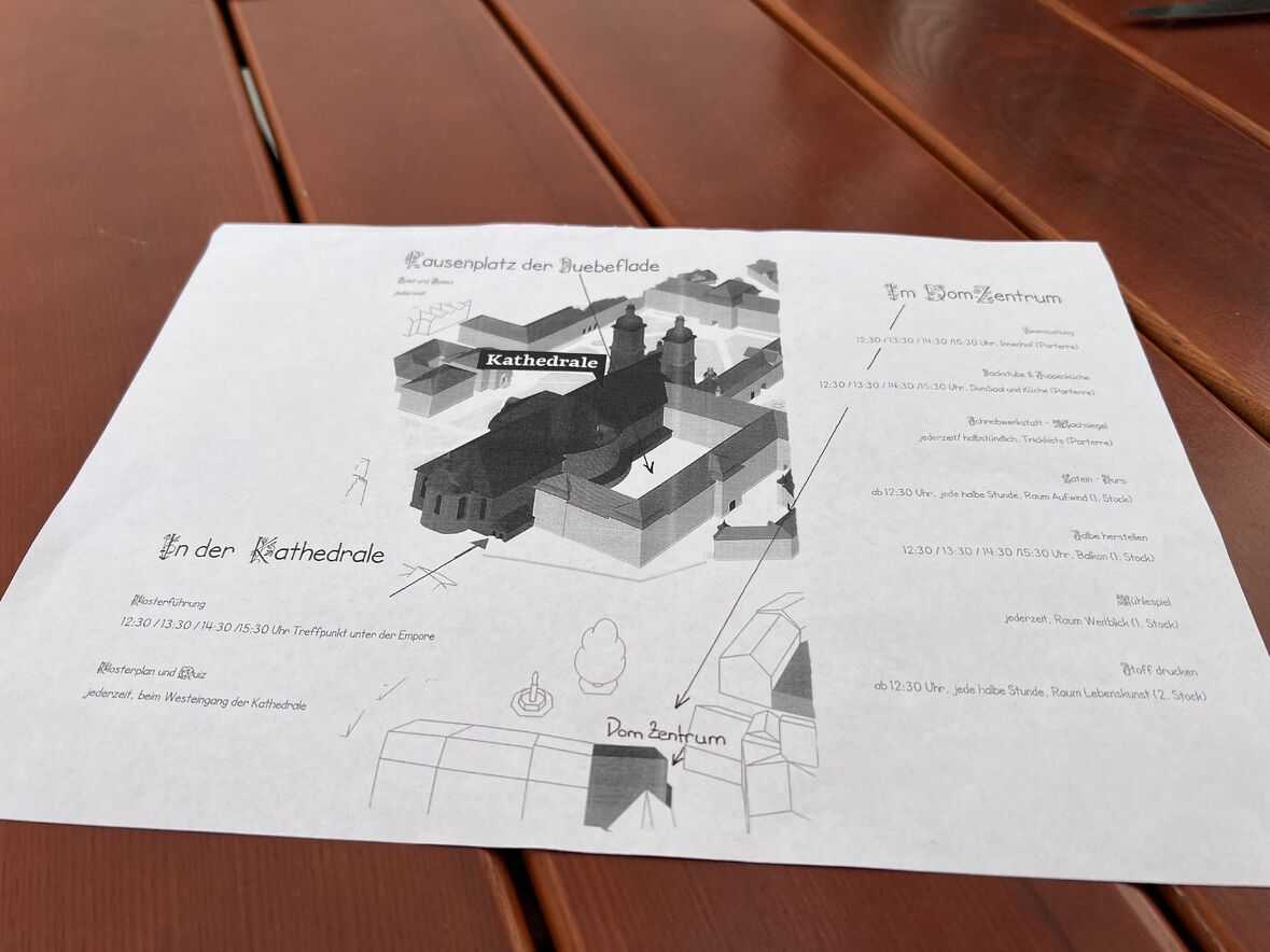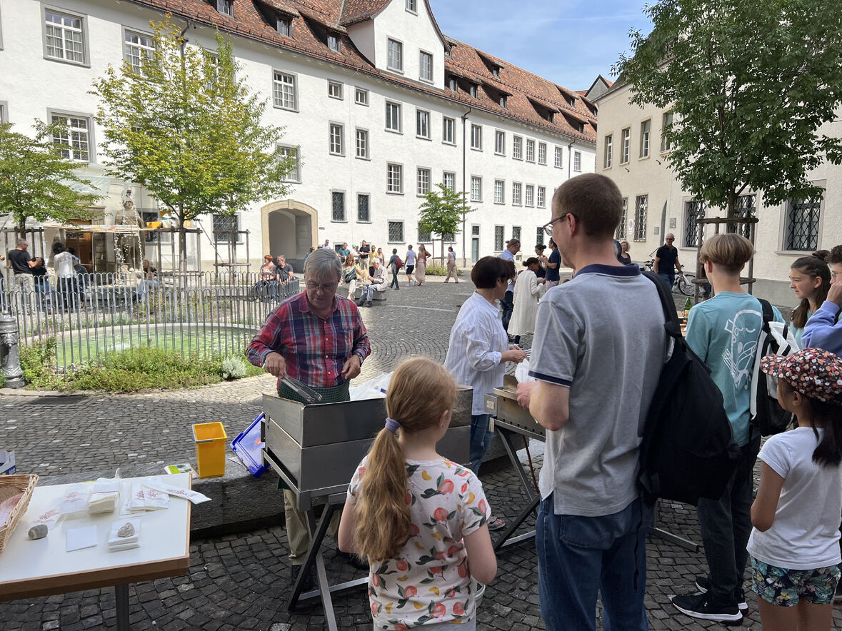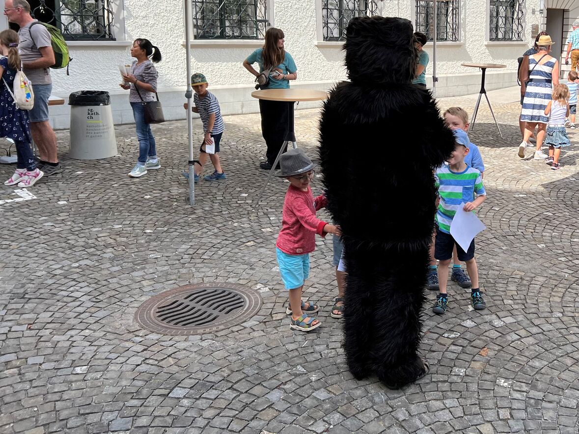 Mit Freude wurden im Gottesdienst vier neue Minis aufgenommen. Nach Wurst und Brot spielten die Kleinsten gemeinsam im Klosterhof. Und beim Basteln und Gestalten im DomZentrum während des Klostertags konnte nachgespürt werden, wie das Arbeiten im Mittelalter aussah. Auch der St.Galler Bär und ein Esel waren unterwegs.