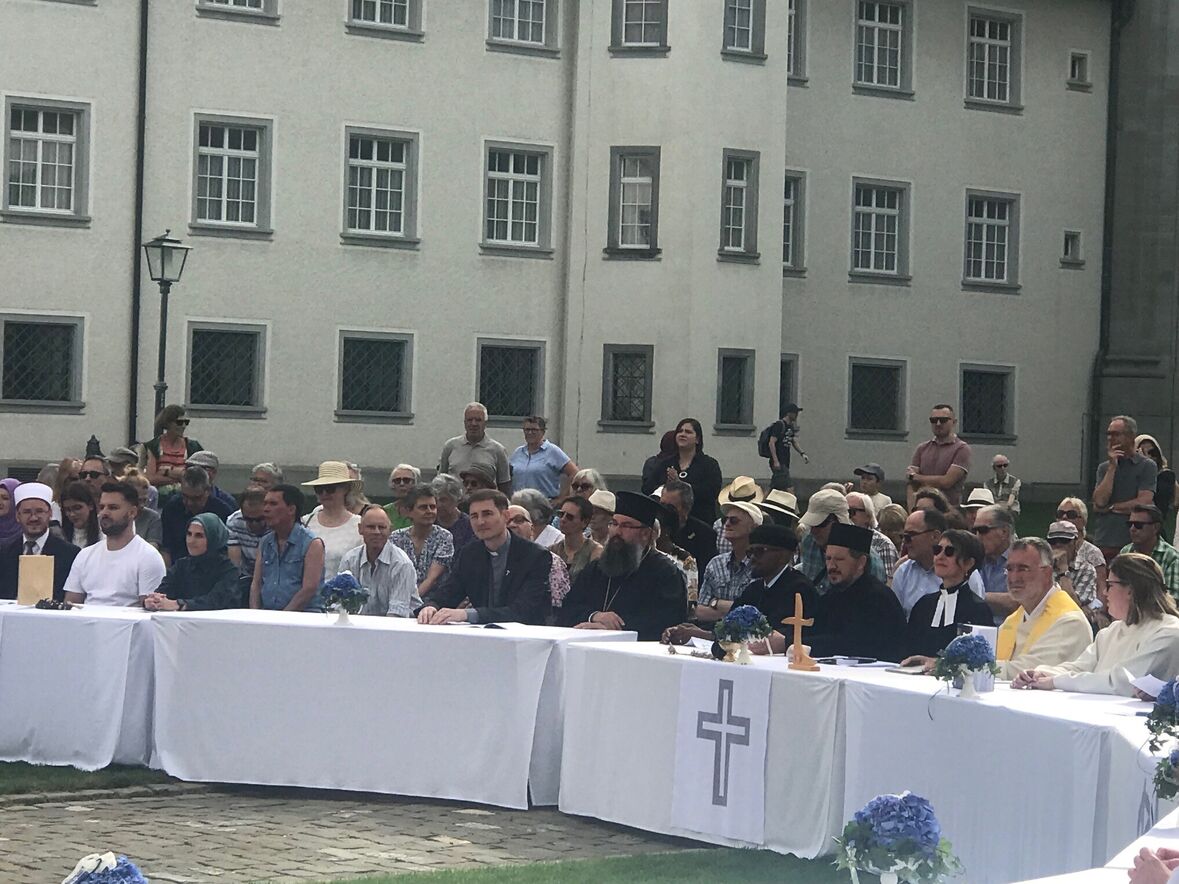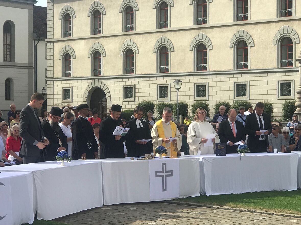 Ein bewegendes Zeichen setzte der ukrainische Priester Nazar Zatorskyy, der in seinem Schlusswort an die Geschichte und Gegenwart seines Landes erinnerte. Er rief alle Mitfeiernden auf, sich auf den wesentlichen Auftrag der Religionen zu konzentrieren: den Betroffenen beistehen, den Opfern helfen, Unrecht zu erkennen und anzuprangern. Auch Moderator Matthias Wenk fand passende Worte. Er äusserte seinen Schmerz und Schock über die Enthüllungen zu den Missbrauchsfällen innerhalb der katholischen Kirche. Das interreligiöse Gebet um Frieden sei hingegen ein Zeichen, dass Religionen für die Zukunft eine wertvolle und wichtige Rolle spielen: «Vielfalt ist unsere Stärke und unsere Identität.»