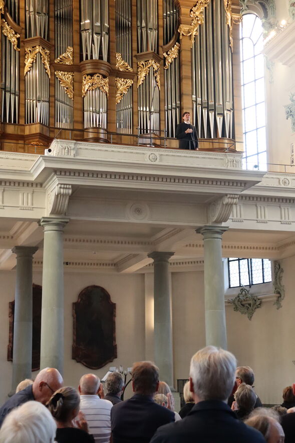 Seinen ersten grossen Auftritt hatte Christoph Schönfelder am Sonntag, 24. September, im Rahmen der Domorgelkonzerte in der Kathedrale. Dabei kamen drei Komponisten zum Zug, die ihm sehr nahestehen: Johann Sebastian Bach, Olivier Messiaen und Max Reger. Er spielte sowohl auf der Chororgel wie auf der Hauptorgel. Beide Instrumente sind ihm bereits stark ans Herz gewachsen: «Die stilistische Vielfalt dieser Orgeln ist einfach enorm.»