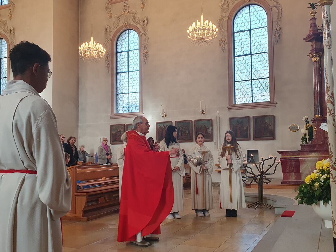 Pfr. Josef Raschle segnet mit Weihrauch.