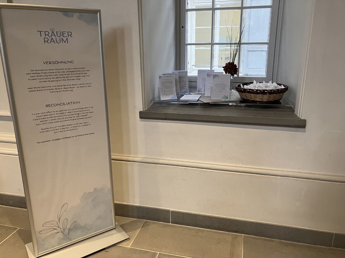 An Allerseelen war der TrauerRaum 2023 in diesem Jahr zum letzten Mal geöffnet. Rund 200 Personen haben ihn besucht, einige Gespräche wurden geführt, 50 Klagen in der Klagemauer deponiert,50 weisse Bänder als Zeichen der Versöhnung in einen Baum geknüpft und 10 Freiwillige haben uns bei der Durchführung unterstützt. DANKE!