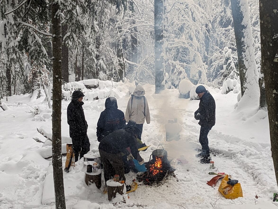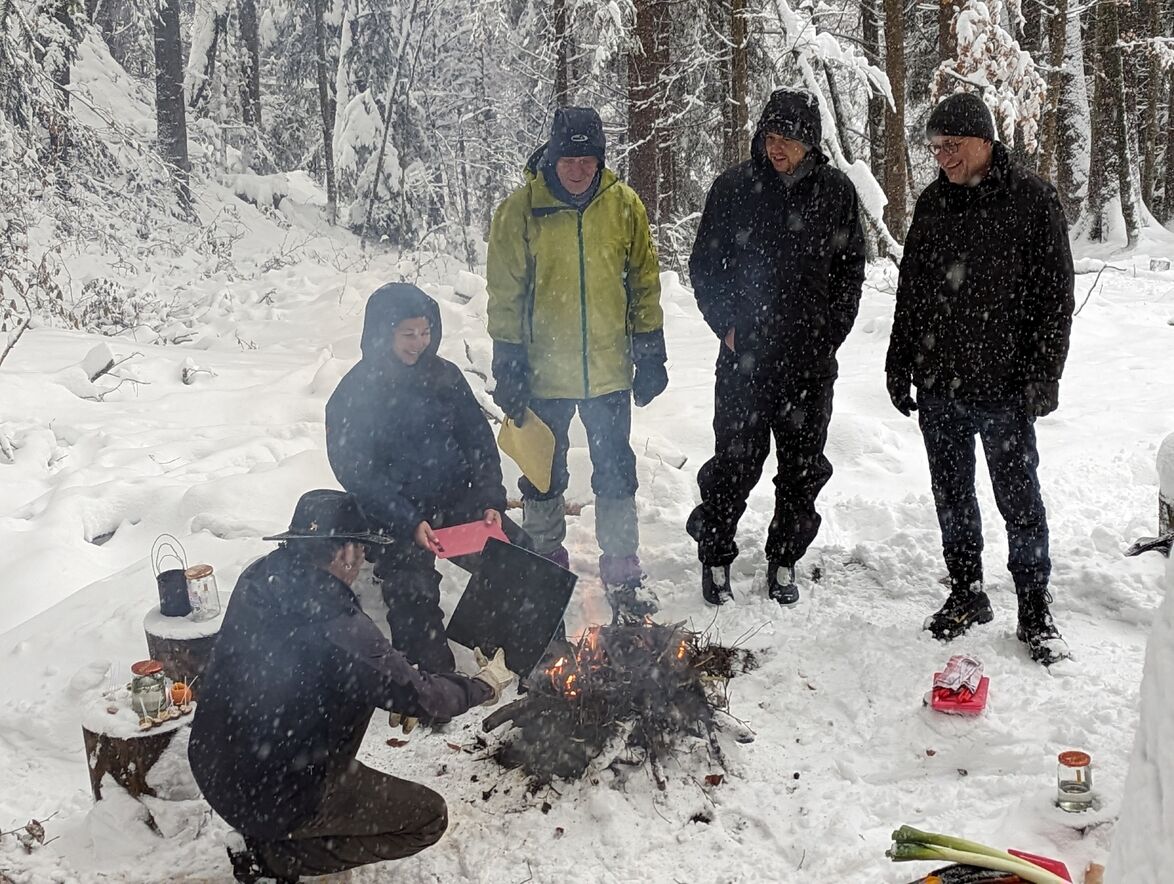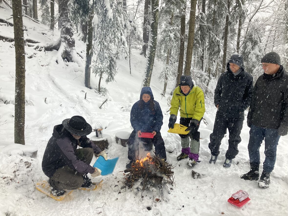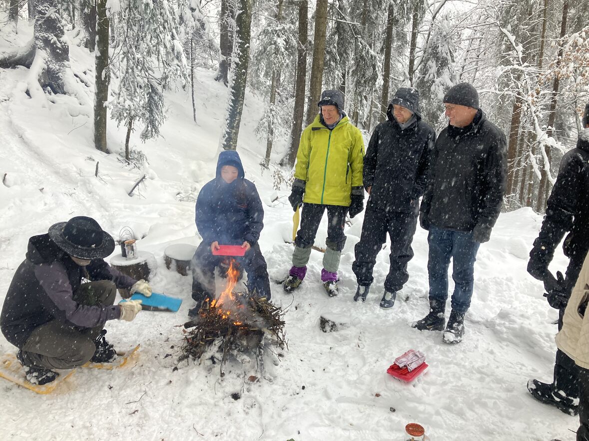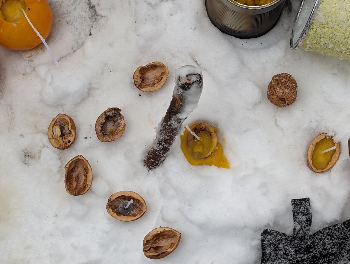 Und plötzlich war er da - der Winter. Er hatte uns am Samstag, 2. Dezember, völlig überrascht - dabei hatten wir uns als Thema "Uns auf den Winter vorbereiten" gewählt. So haben wir uns mitten im Winter auf den Winter vorbereitet: wir haben eigene kleine Feuer entfacht, darüber Wachs geschmolzen um in Baumnussschalen und ausgehöhlten Mandarinli Kerzli zu giessen, uns Geschichten von Licht und Sommer zu erzählen, Nüssli zu rösten und und und