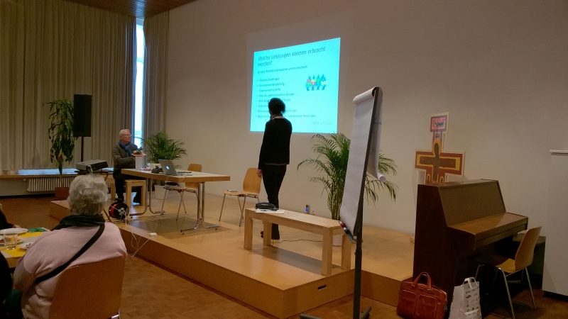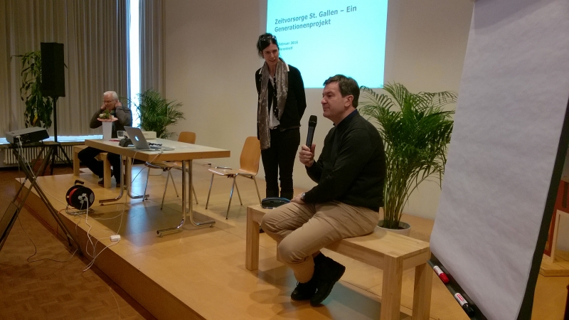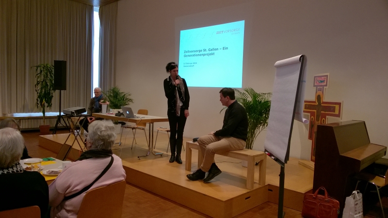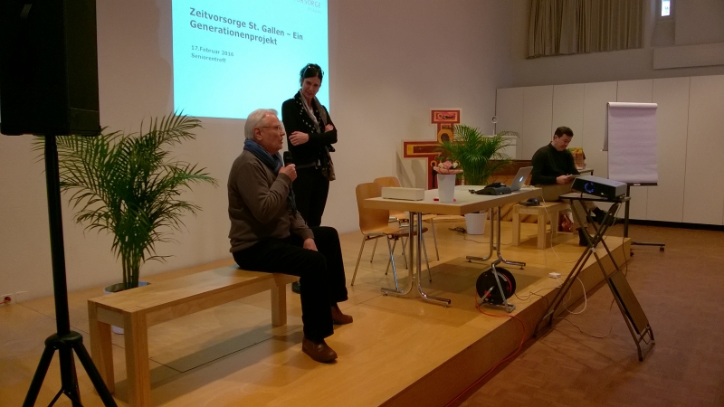 Die Zeitvorsorge St. Gallen ist ein Angebot für Seniorinnen und Senioren in der Stadt St. Gallen. Zum heutigen Seniorennachmittag im Pfarreiheim Bruder Klaus präsentierte die Geschäftsführerin, Priska Muggli, das Angebot der Zeitvorsorge. Zusammen mit Kurt Bischof und Urs Meier wurde auf spielerische Art und Weise die Idee der Zeitvorsorge vermittelt. Im Anschluss an die Präsentation wurde die Gelegenheit für Fragen und Auskünfte rege genutzt. Den 31 interessierten Gästen wurde zum Abschluss ein feiner z'Vieri offeriert. Bei Kaffee und «Spitzbuben» wurde untereinander noch lange rege diskutiert.