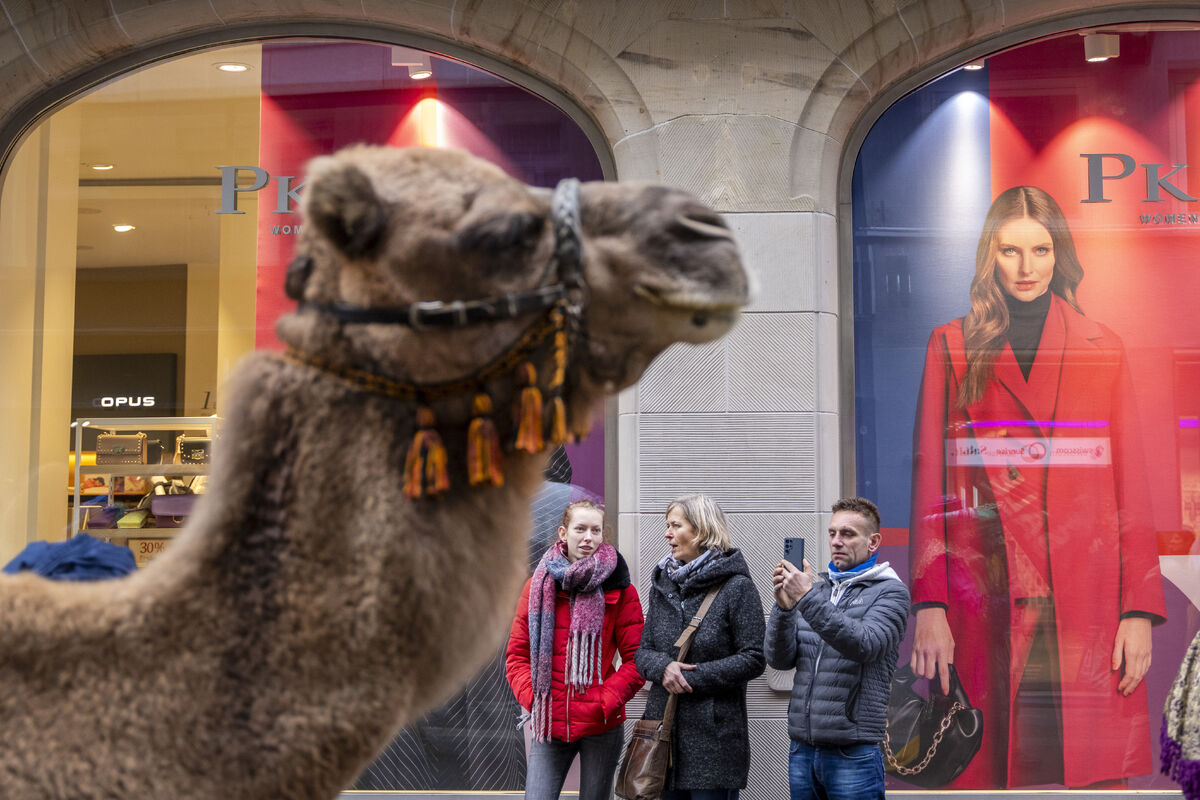 Bei gutem Wetter und vor grossem Publikum ist an drei Standorten in der St. Galler Innenstadt die Weihnachtsgeschichte aufgeführt werden.