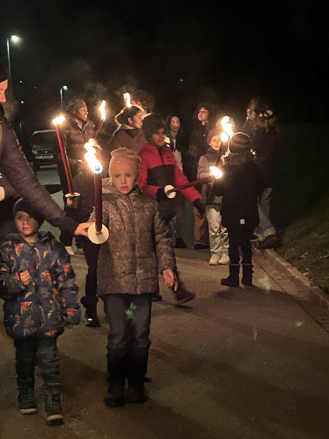 Mit einem Fakelumzug machten gross und klein sich auf den Weg zum Wald bei Peter und Paul. Bei trockenem Wetter und fröhlicher Simmung feierten alle im Schein des Feuers und mit besinnlichen Liedern Waldweihnachten.