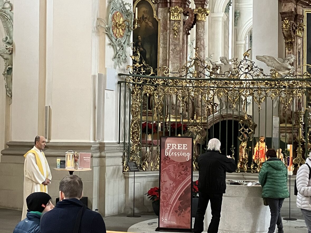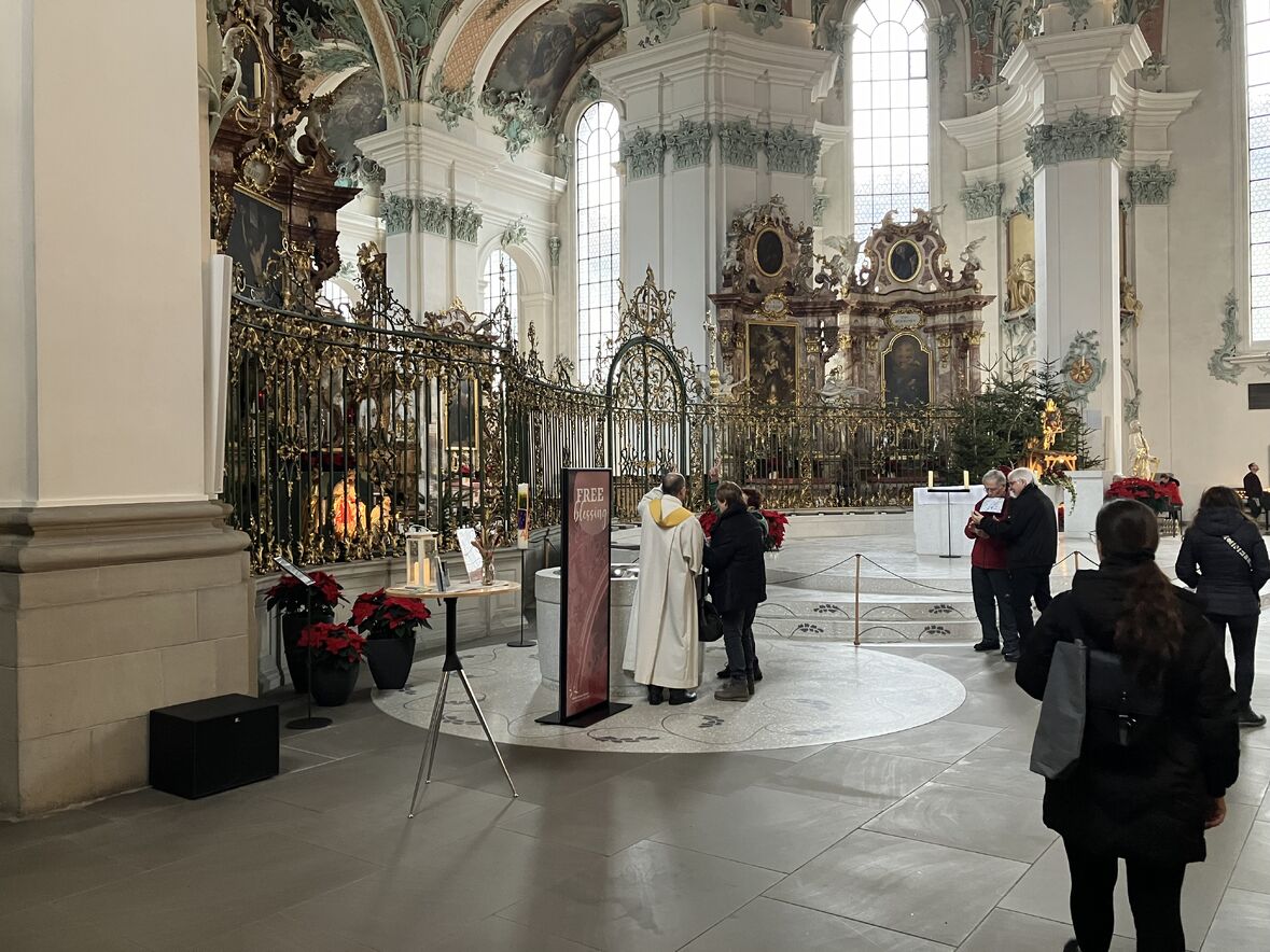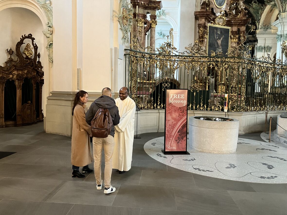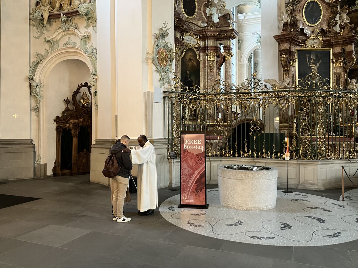 Seit Dienstag, 19. Dezember, sind mit Ausnahme der Feiertage bis zum 30. Dezember jeweils von 14 Uhr bis 17 Uhr Seelsorgende in der Kathedrale anwesend, um Menschen, die es wünschen, zu segnen. Dabei können Interessierte um Segen für ein besonderes Anliegen bitten oder aber sich einfach segnen lassen. In den neun Tagen, in denen wir Free Blessing angeboten haben, konnten wir rund 500 Menschen Gottes wohltuenden Segen weitergeben - Kindern, Erwachsenen, Senior:innen; Menschen aus verschiedenen Ländern; es wurde dabei gelacht und geweint. Segen berührt - das durften wir Seelsorgenden einmal mehr erfahren!