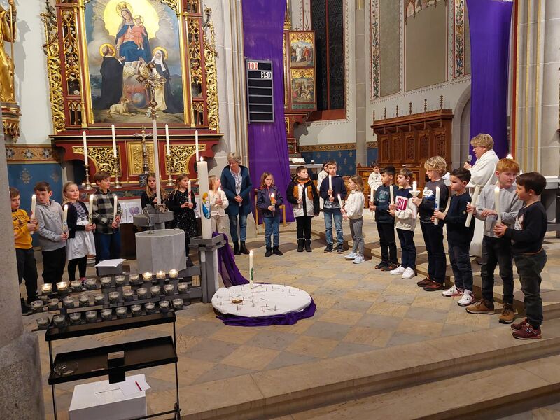 Gestaltet wurde die Feier von der Seelsorgerin Brigitta Schmid Pfändler und der Katechetin Beatrice Bühler. Mit gemeinsamen Liedern, die vom Organisten Joachim Oberholzer am E-Piano begleitet wurden, selbst formulierten Fürbitten und einer schönen Geschichte wurde das Motto des Erstkommunionweges "Ich bin das Licht der Welt - ihr seid das Licht der Welt" ganz nahe herangeholt, spür- und durch das Licht der eigenen Taufkerze eindrücklich erfahrbar.