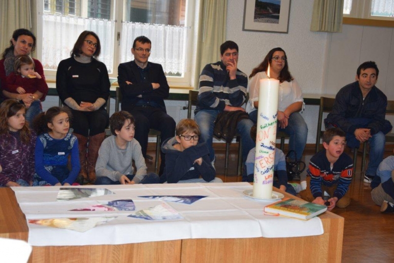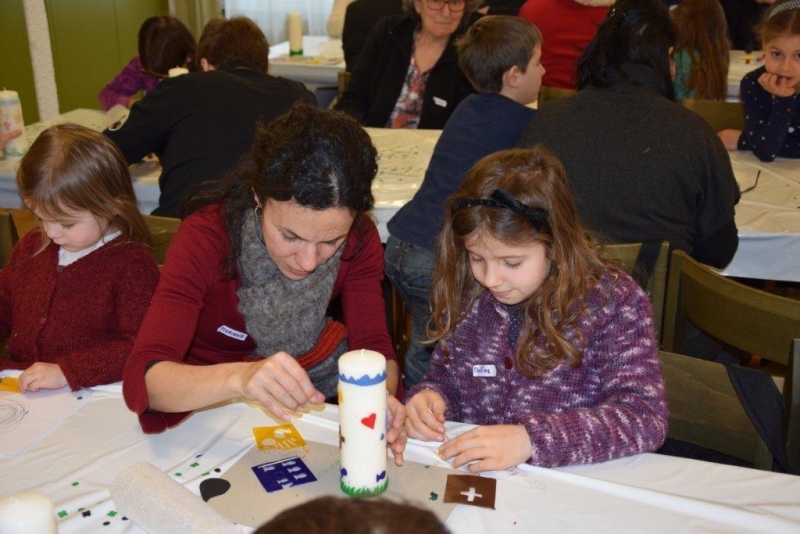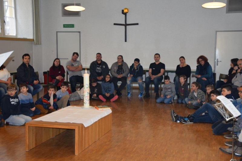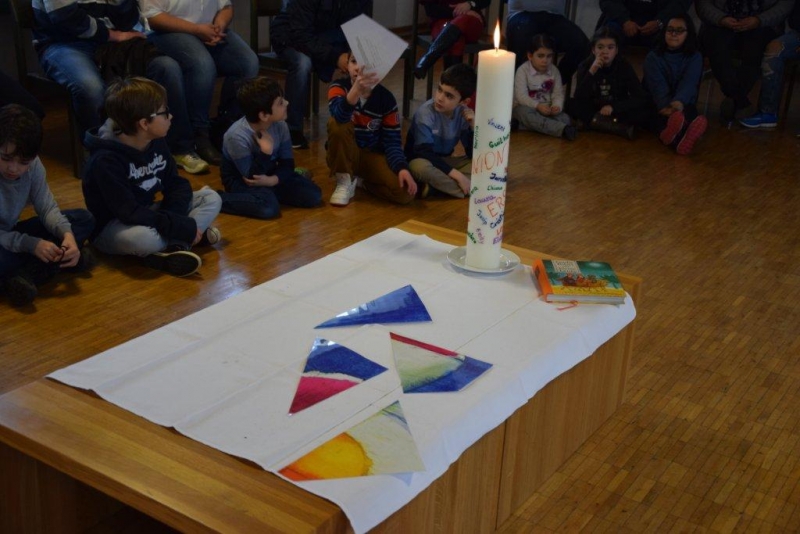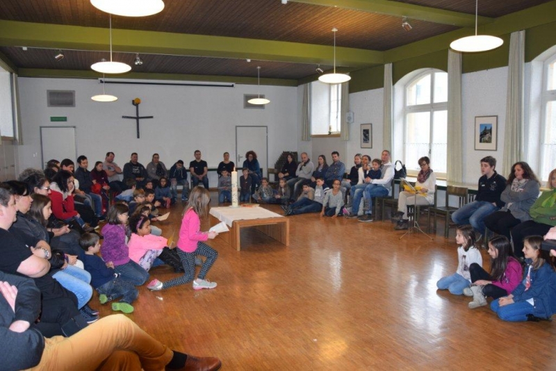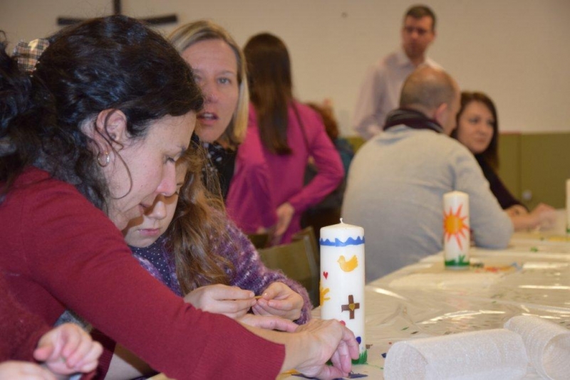 Im Rahmen des Erstkommunionweges 2015/2016 fand am letzten Samstag im katholischen Pfarrheim St.Otmar der Eltern-Kind-Tag statt. Die Erstkommunikanten aus den Pfarreien St.Otmar und Dom verbrachten mit ihren Eltern einen gemeinsamen Tag. Zentral war das Thema „Jesus mein Freund“, das Kinder und Erwachsene in verschiedenen Gruppen vertieft haben. Rückblickend auf die Tauferneuerung und auf die Freundschaft mit Jesus durften die Kinder ihre eigene Erstkommunion Kerze mit entsprechenden Symbolen verzieren. Das bunte, kulinarische Mittagsbuffet, das Singen und das Spielen im Innenhof haben den Tag zum gemeinsamen Erlebnis gemacht.