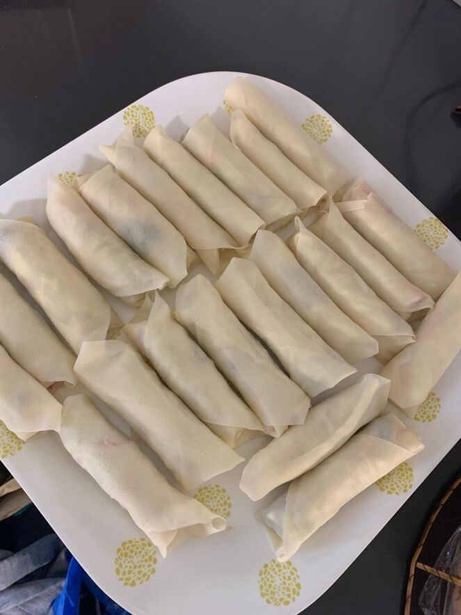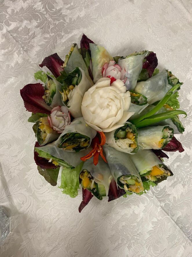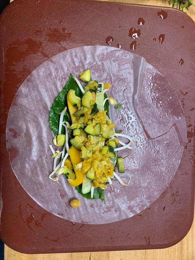Das zusammengestellte Abendessen von S. beinhaltete Frühlingsrollen mit einer Gemüse-Tofu Füllung sowie frischen Sommerrollen gefüllt mit Kräuter,Gemüse und Ei als Vorspeise.