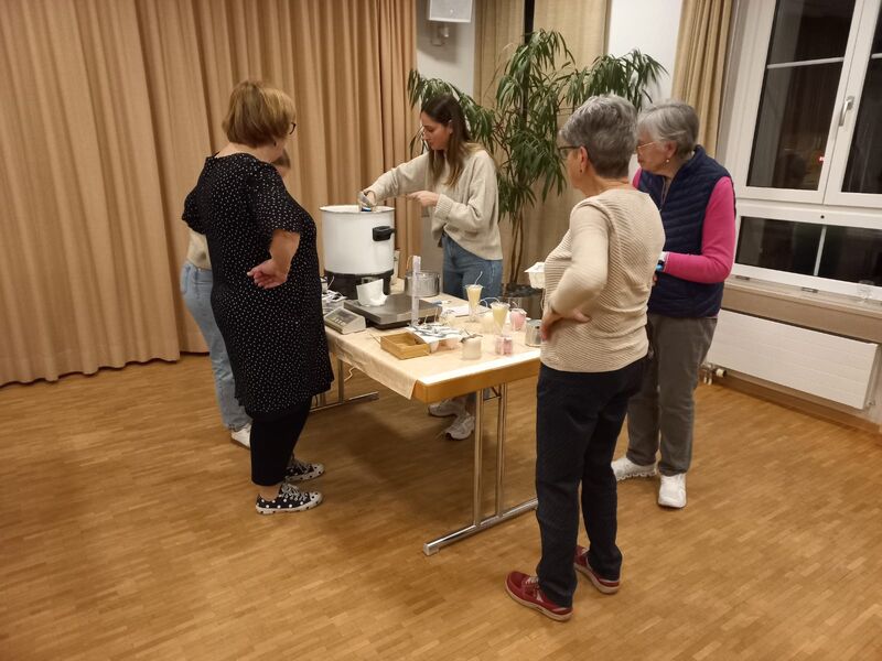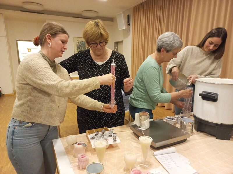 Mit Nicole und Miriam durften wir aus Rapswachs (Abfallprodukt der Rapsgewinnung) tolle Kerzen in verschiedenen Formen und Farben giessen.