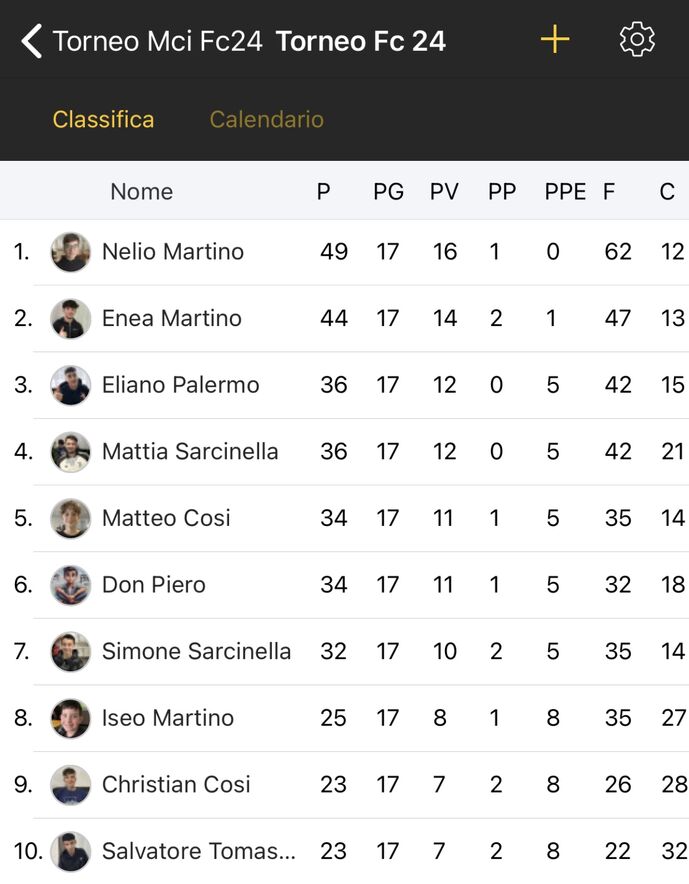 4 Mesi di dura battaglia per i concorrenti al titolo di CAMPIONE FC 24 della MCI. Gioia, divertimento, amicizia, fede...hanno riempito la Sala della MCI per lunghi pomeriggi domenicali con l'unica voglia di stare insieme. Tutti Vincitori in un Torneo da ricordare!
