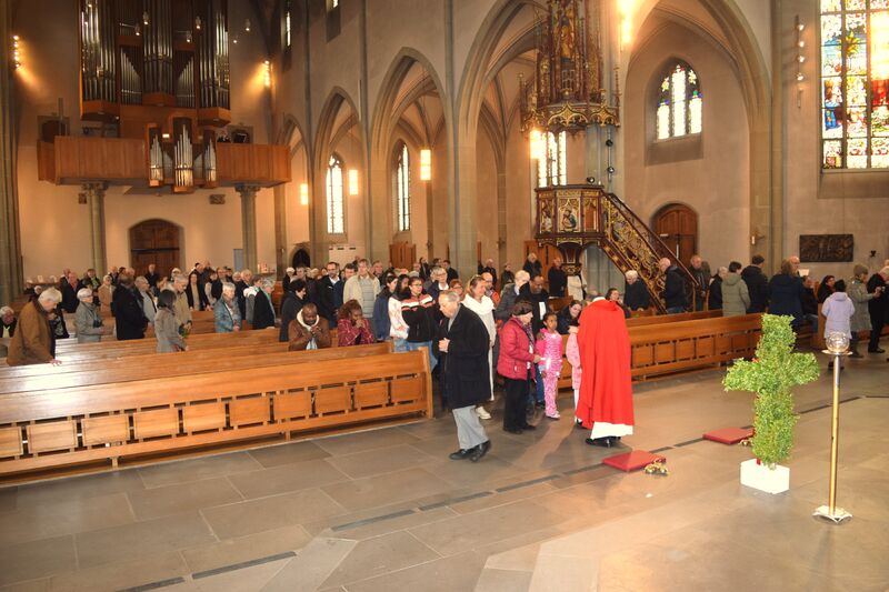 Die Pfarrei St.Otmar feierte an Palmsonntag unter grosser Beteiligung der Gläubigen einen feierlichen Gottesdienst. Aufgrund des kalten und windigen Wetters musste der Beginn des Gottesdienstes mit der Palmzweigweihe in die Kirche verlegt werden. Zugleich feierte Pfarrer Alfons Sonderegger sein 60-jähriges Dienstjubiläum als Priester, der jahrelange als Pfarrer die Pfarrei leitete. Nach dem Gottesdienst waren alle zu einem Apéro zu Ehren des Jubilars eingeladen.