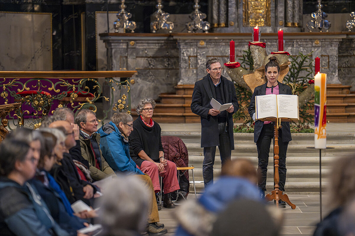 Am zweiten Adventssonntag (10. Dezember 2023) haben sich Katholikinnen und Katholiken im Chorraum der Kathedrale zu einer besinnlichen Feier getroffen und ein starkes Zeichen für eine geschwisterliche Kirche gesetzt. Die jüngsten Ereignisse haben nicht nur Wut ausgelöst, sie liessen auch neue Kräfte entstehen. Diese waren in verschiedenen Statements zu spüren. Auch städtische Politprominenz meldete sich am Mikrophon. www.reformenjetzt.ch