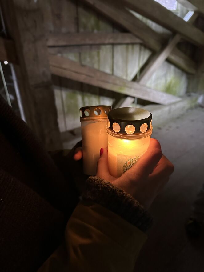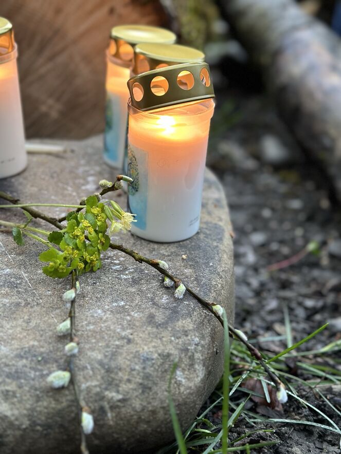 Noch in der Dunkelheit des Ostermorgens haben sich Mensch und Tier (genau 19 Menschen und ein Hund) an der Wolfgangkapelle getroffen, um diesen besondern Morgen miteinander spirituell zu beginnen. Im Schein der brennenden Osterkerzen wanderten diese dem anbrechenden Tag entgegen - auf der Gangelibrugg über das Sittertobel hinweg. Eine Frage begleitete die Mitgehenden dabei: Welche Abgründe, welche Dunkelheiten im Leben habe ich schon überwunden und was hat mir dabei geholfen? Singend, austauschend und betend sind sie dabei immer TIiefer in die Magie des Ostermorgens eingetaucht. Die Natur war dabei ein grosse Hilfestellung.