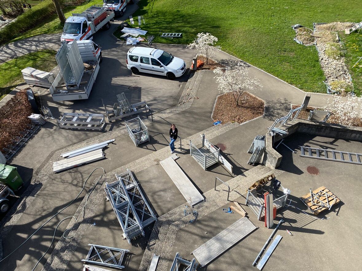 Die Gerüstbauarbeiten sind pünktlich nach Ostern begonnen und die Arbeiten schreiten gut voran.