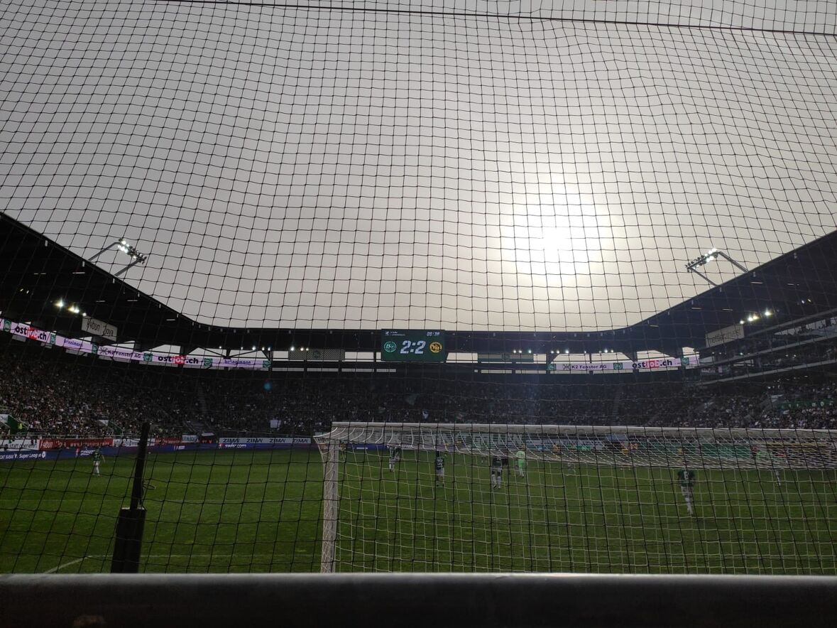 Das Wetter war super und die Stimmung im Stadion war auch sehr gut. Die beiden Mannschaften haben super gekämpft und am Ende des Spiels stand es 2:2.