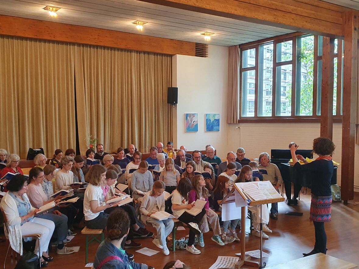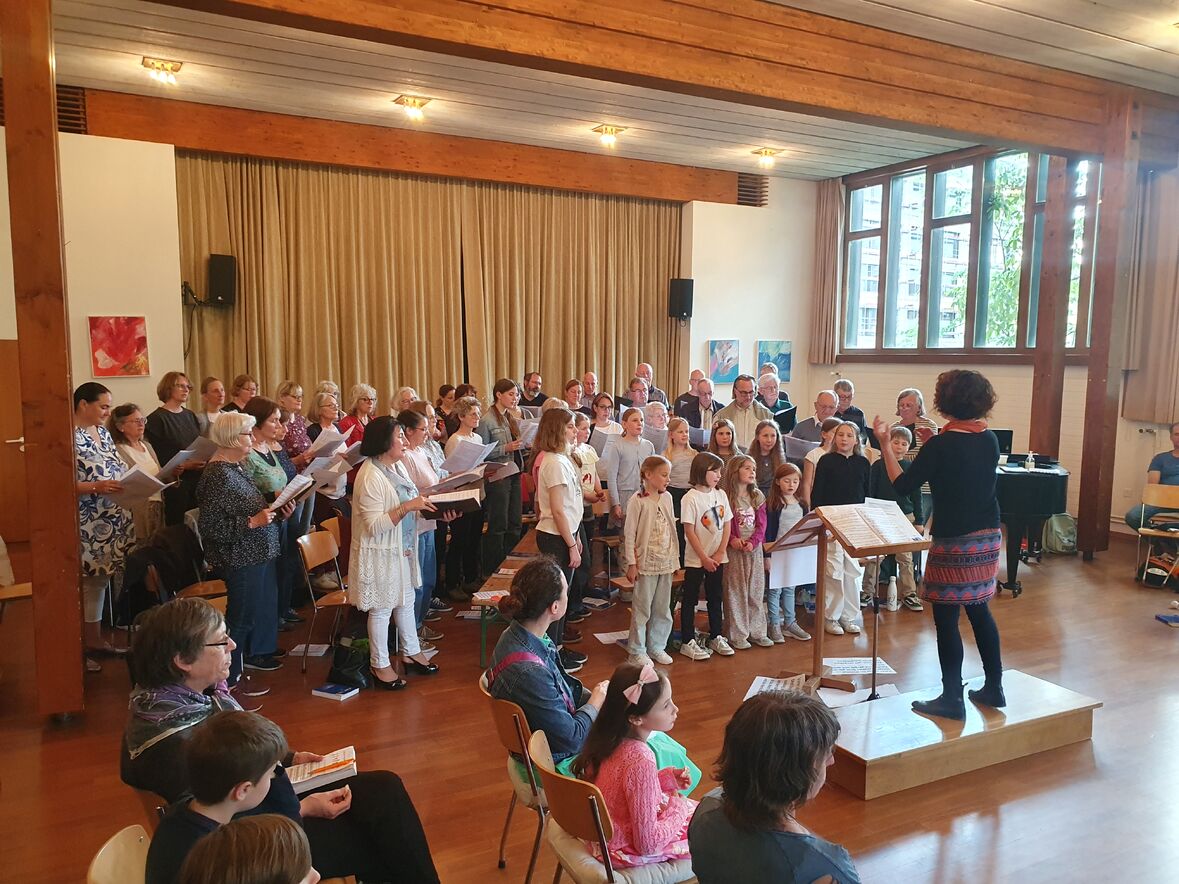 Pfingstfeuer-Gottesdienst für alle Generationen, beleitet vom altersdurchmischten Adhoc-Chor von Maja Bösch.