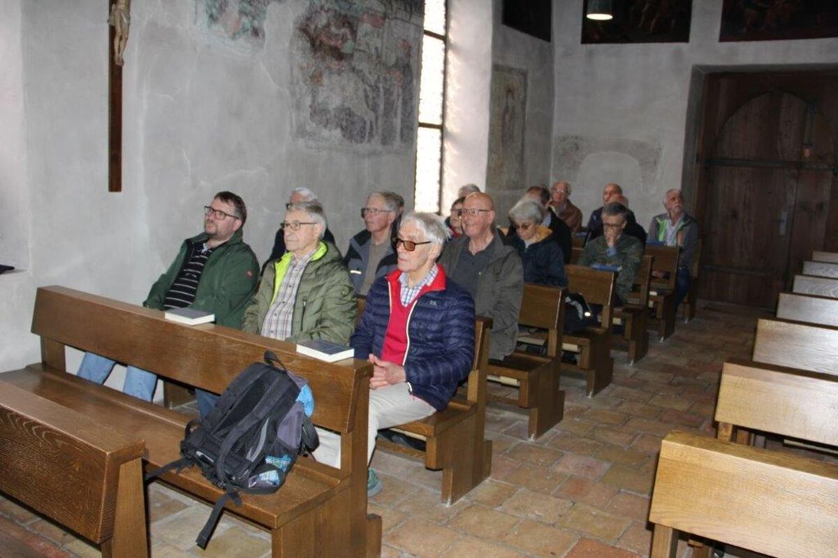 Bei idealstem Wetter startete die wanderfreudige Gruppe von Frauen und Männern (15 Teil-nehmende) ab Bahnhof Hauptwil Richtung Bischofszell. Nach einem kurzen Anstieg bei Hauptwil führte die Wanderstrecke mehrheitlich über Wiesen- und Waldwege zur Michaelskapelle in Bischofszell. Dort gestaltete Marjan Paloka die Maiandacht zu Ehren der Himmelskönigin Maria. Der Maianlass wurde bei Kaffee und Gipfeli im Restaurant Caprese abgerundet.