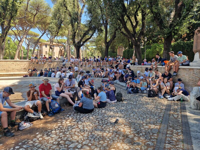 Zum ersten Bild: 400 Minis der Deutschschweiz lernen sich in einem Park nahe des Hotels kennen (Sonntag, 27.7.2024). Dabei sind auch 7 DomMinis!