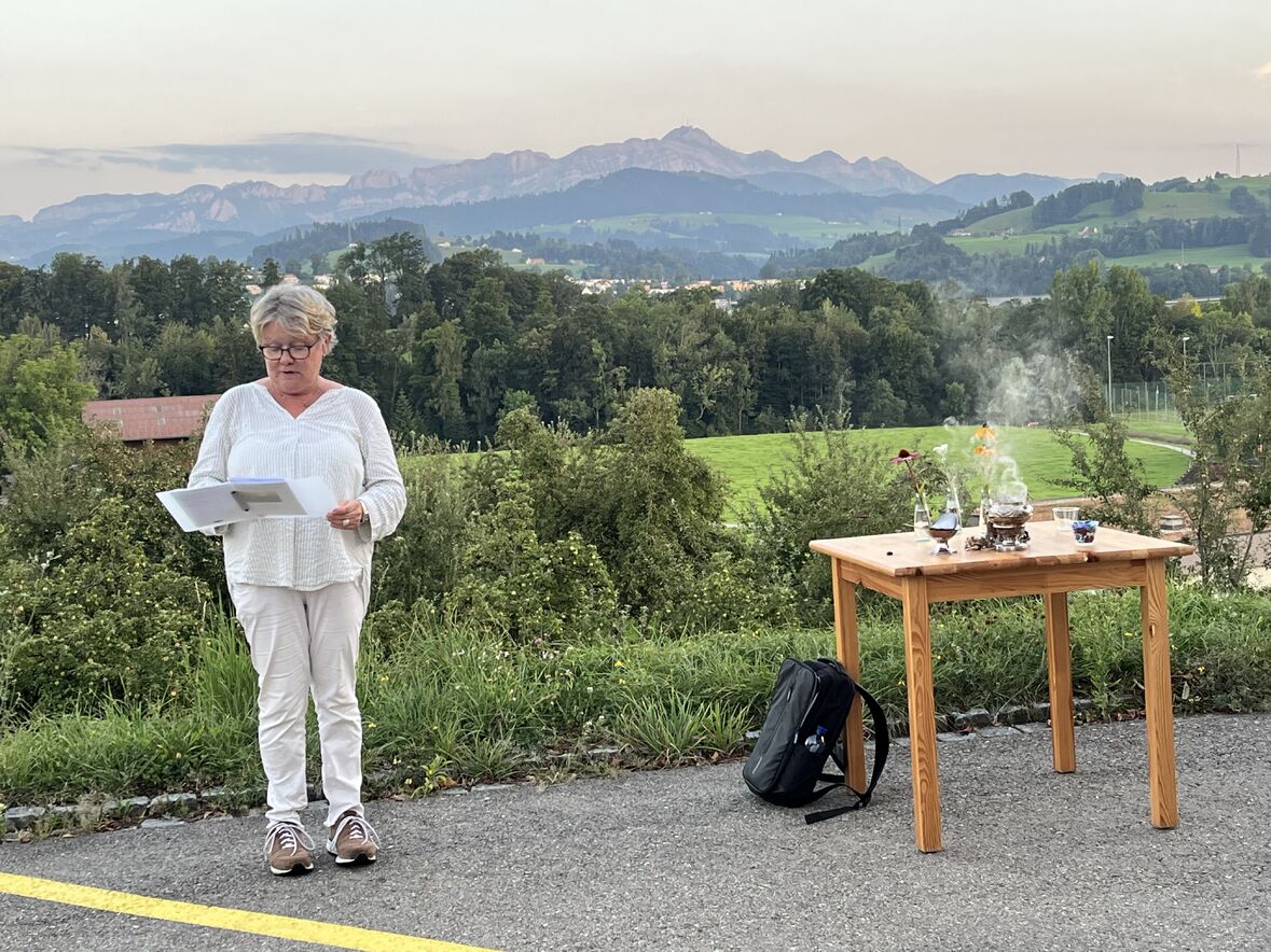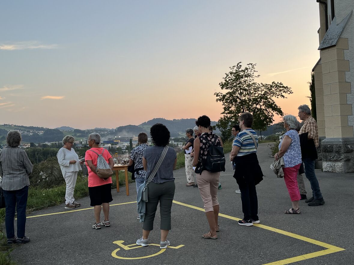 Am Donnerstagabend, 22. August 2024 machten sich 15 Frauen und 1 Mann auf den Weg zum ökumenischen Abendbummel von der katholischen Kirche durch das Dorf Abtwil unter dem Motto: Siehe wir kommen beim Sinken der Sonne, mit Texten von Madeleine Delbrel. Gemeinsam durften sie einen Wegabschnitt, unter der Gestaltung von unserer Seelsorgerin Brigitta Schmid Pfändler miteinander teilen. Am Schluss endete der Weg bei Sonnenuntergang vor der katholischen Kirche.