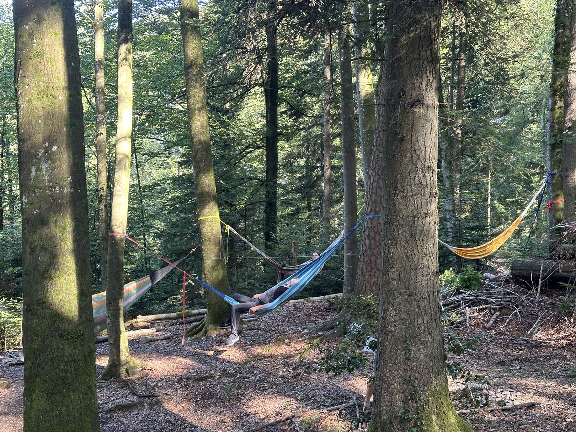 - und in Hängematten konnten wir uns fallen lassen und uns ganz dem Blau des Himmels und dem Blätterdach über uns hingeben
