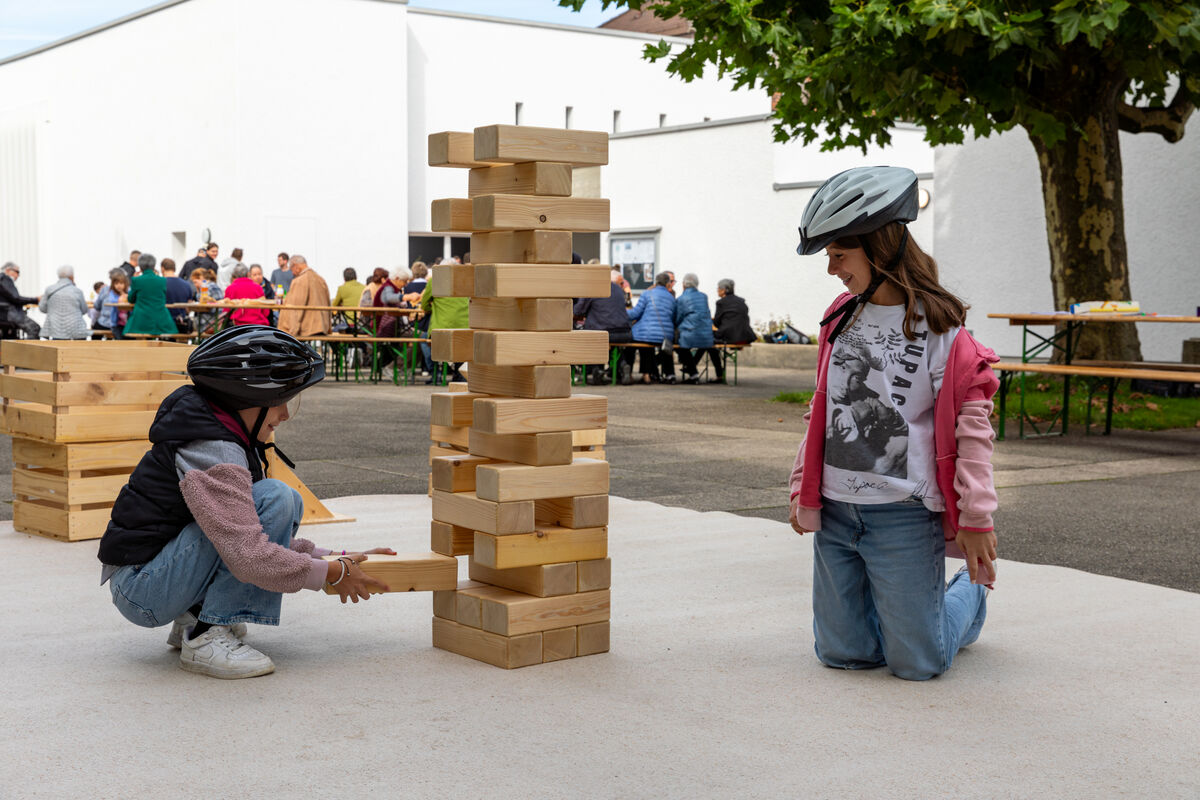 Nach dem feierlichen Gottesdienst waren alle eingeladen zur Festwirtschaft mit Wurst und Brot. Das schöne Wetter liess es zu, dass alle draussen sitzen konnten. Das Spielangebot von unserer Jugendarbeiterin Julia Hämmerli wurde rege benutzt. An dieser Stelle sei dem Pfarreirat herzlich gedankt für den Aufbau und Durchführung der Festwirtschaft!