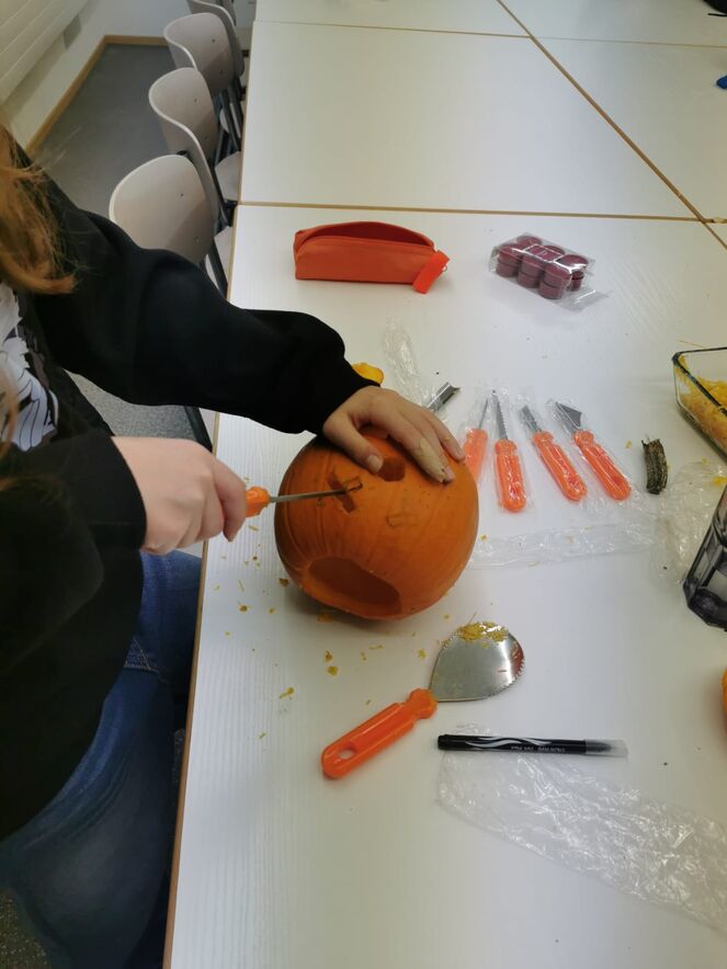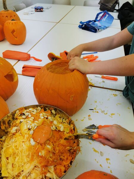Halloween steht vor der Tür, und die Jugendlichen sind schon voll im Gruselfieber! Letzten Mittwoch haben sie fleissig Kürbisse geschnitzt und dabei schaurig-schöne sowie witzige Gesichter gezaubert.