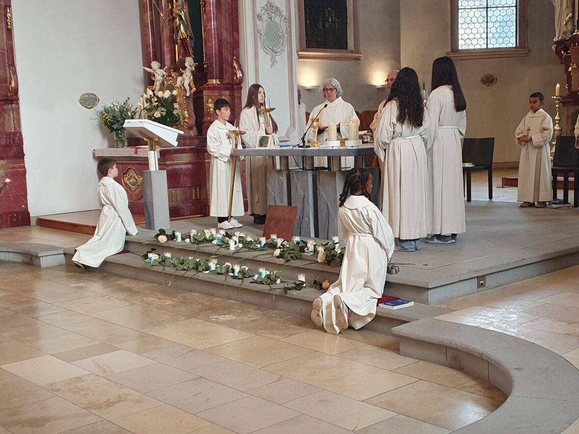 In St.Fiden wird jeweils ein Stein auf einen Seitenaltar gelegt, sobald jemand verstorben ist. Zu Allerheilgen werden die Namen verlesen und ein Stein, eine Kerze und eine Rose an die Angehörigen übergeben.