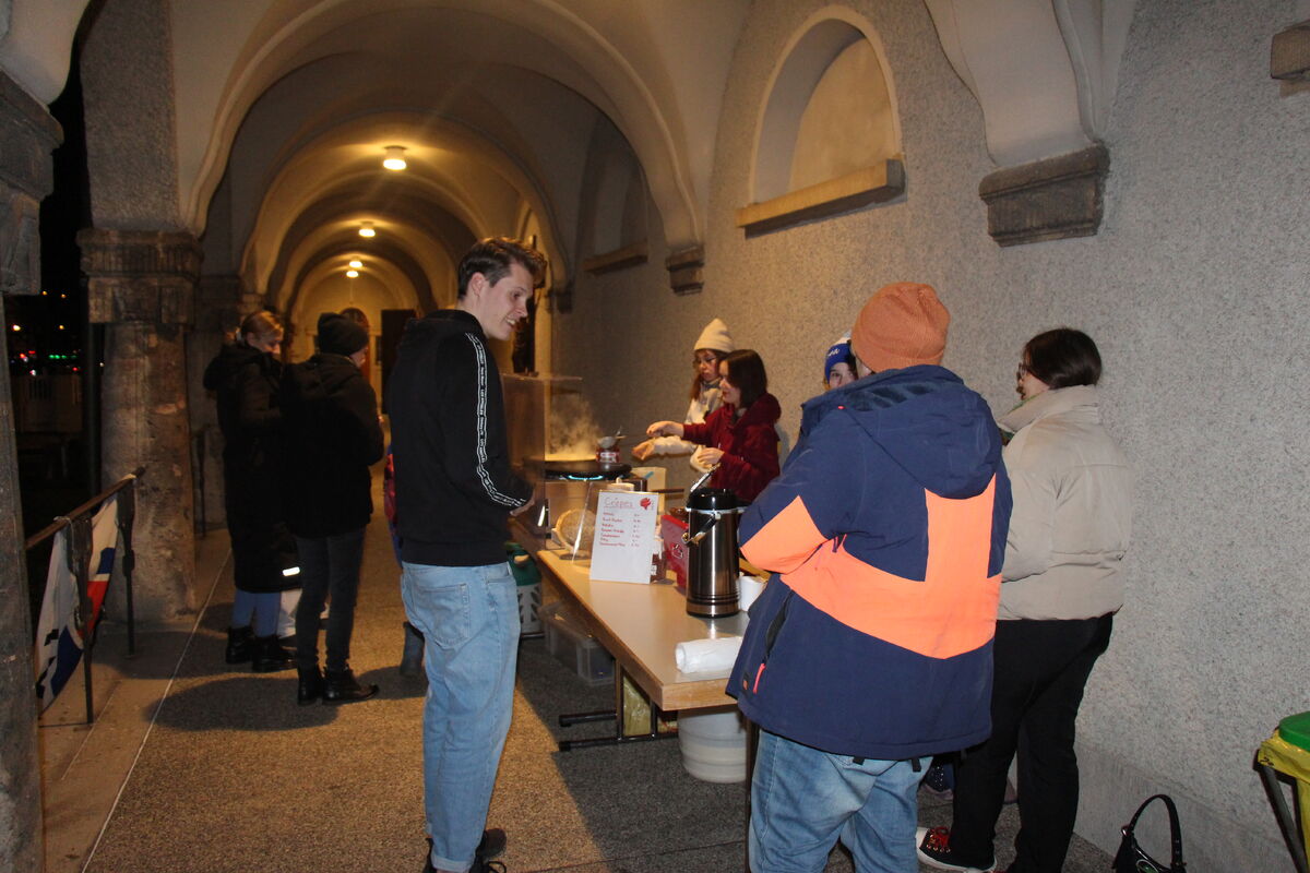 Beim anschliessenden Nachtessen mit Wienerli und Kürbis-Suppe und den verschiedenen Ateliers für Kinder (Basteln, Schatzsuche, Tanzstunde, Turmbesteigung und Kinderschminken) kamen alle Besucherinnen und Besucher auf ihre Kosten.