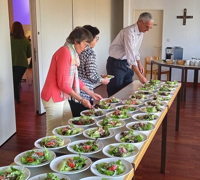 Davor wurde in der Kirche ein stimmungsvoller Gottesdienst gefeiert, der von der Familienkapelle "Echo vom Gerstgarten" wunderbar musikalisch umrahmt wurde. Die vier Geschwister haben es auch bestens verstanden die Menschen vor, während und nach dem gemeinsamen Mittagessen im Pfarreiheim zu unterhalten. Das Menue, sehr schmackhaft zubereitet und zusammengestellt von Maria und Josef Hengartner, hat allen geschmeckt und nicht selten wurde ein Nachschlag dankend angenommen.
