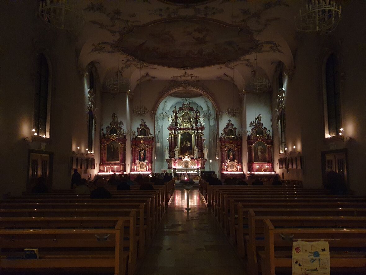 Es ist wunderschön, wenn dir Kirche von vielen Kerzen beleuchtet ist.