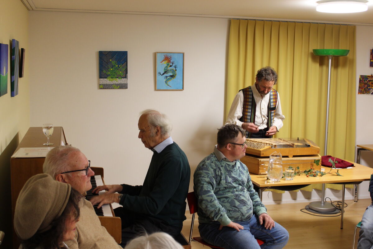 Am Freitag 29. November fand im Offenen Haus die Vernissage der aktuellen Bilderausstellung des ARTeliers statt. Die Stimmung war gut und es waren ca. 35 Personen anwesend. Die musikalische Begleitung des offiziellen Teils durch Roland Büchel (Hackbrett) und Peter Rohner (Klavier) rundete den Anlass gebührend ab. Beim gemeinsamen Apèro wurde über die Bilder sinniert und die anwesenden Kunstschaffenden erzählten Geschichten über ihre Werke. Der Sozialdienst und Offenes Haus bedanken sich bei allen beteiligten Personen, insbesondere bei Kathrin Thurnherr, der Leiterin des ARTeliers, welche die Ausstellung begleitet. Die Ausstellung kann noch bis zum 20. Juni 2025 während den Durchführungsterminen des ARTeliers ohne Anmeldung besichtigt werden (siehe kathsg.ch/artelier). Die ausgestellten Werke können zu einem fairen Preis gekauft werden, wobei der gesamte Erlös an die jeweilige Künstlerin/Künstler fliesst.